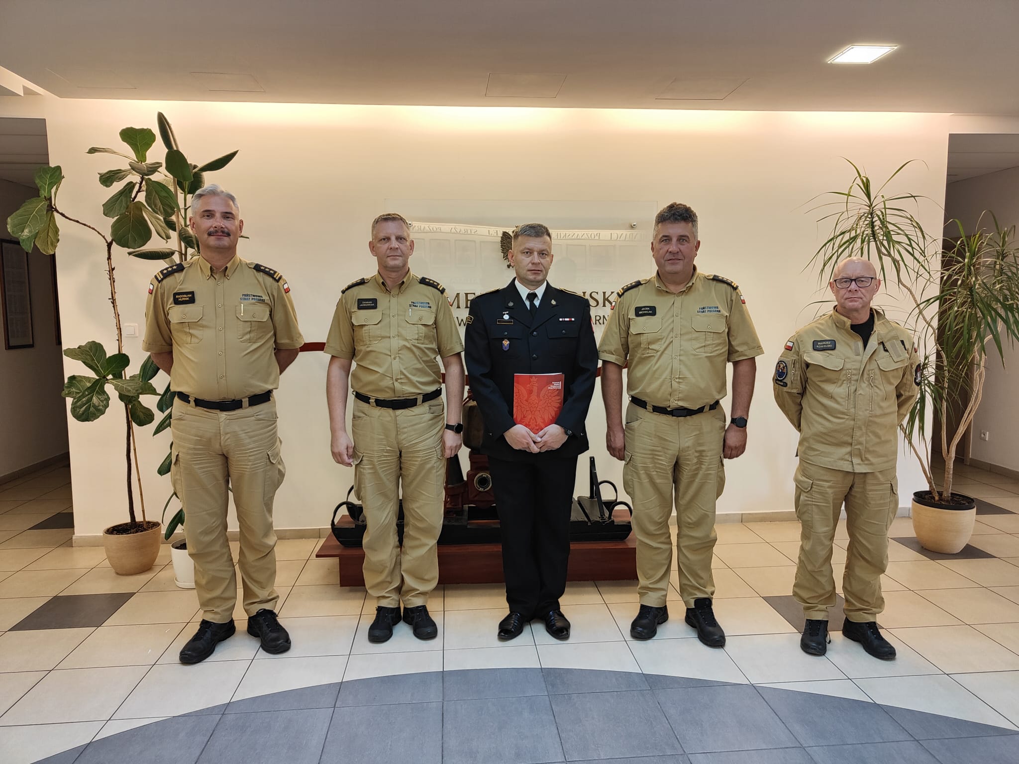 Dnia 21 sierpnia 2023r. Komendant Miejski Państwowej Straży Pożarnej w Poznaniu st. bryg. Jacek Michalak w obecności Zastępców Komendanta – st. bryg. Radosława Hurnika, st. bryg. Damiana Jankowiaka oraz Dowódcy Jednostki Ratowniczo-Gaśniczej nr 1 bryg. Mariusza Kowalskiego wręczył nagrodę jubileuszową za 25 lat pracy i służby asp. Tomaszowi Wituckiemu z JRG-1.