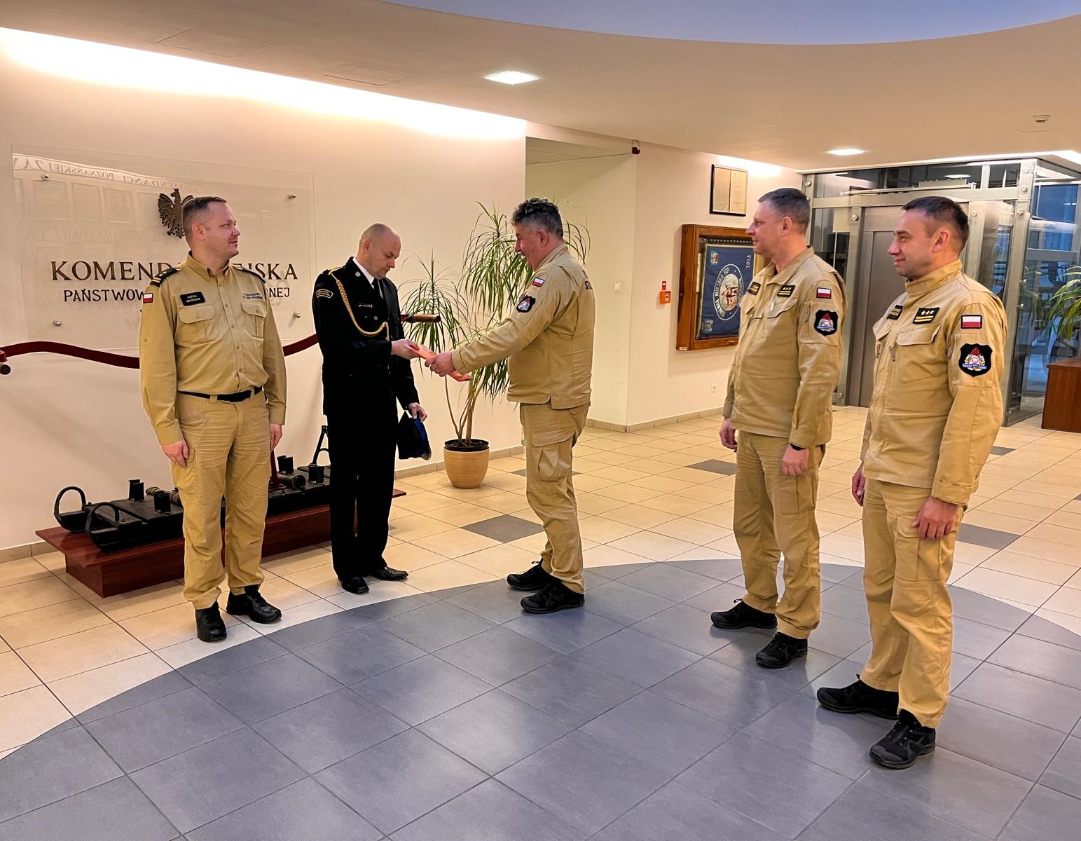 Dnia 6 listopada 2024 r. Komendant Miejski Państwowej Straży Pożarnej w Poznaniu st. bryg. Jacek Michalak w obecności Zastępców Komendanta: st. bryg. Grzegorza Banaszaka, st. bryg. Damiana Jankowiaka oraz Dowódcy Jednostki Ratowniczo-Gaśniczej nr 2 bryg. Rafała Brodziaka wręczył nagrodę jubileuszową st. ogn. Mariuszowi Biernacikowi za 25 lat służby i pracy.