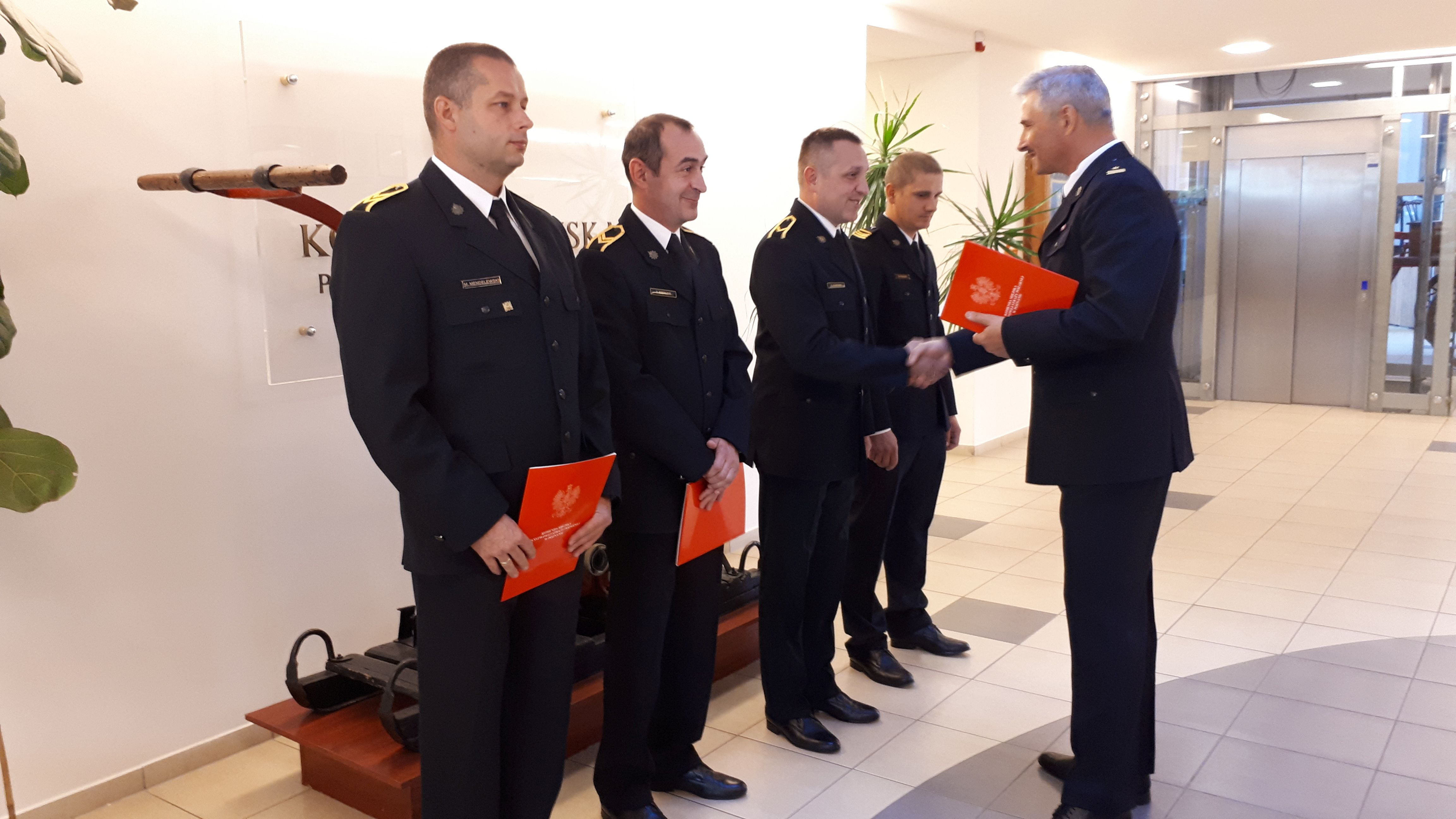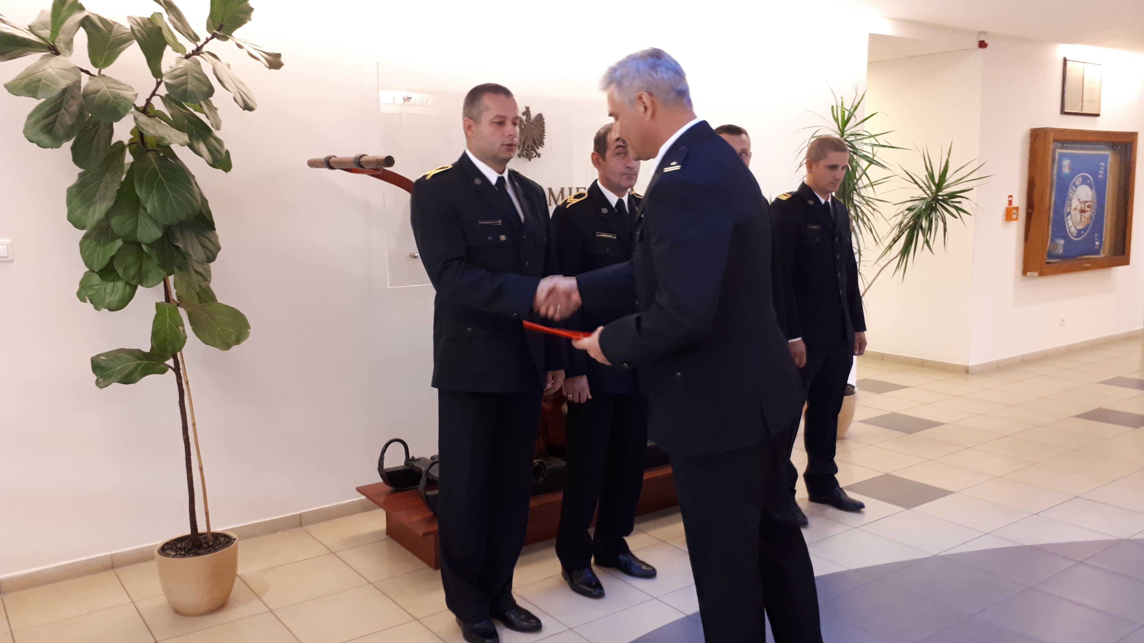 Przełożeni złożyli gratulacje wyróżnionym strażakom gratulując profesjonalnego podejścia do wykonywanych obowiązków służbowych.