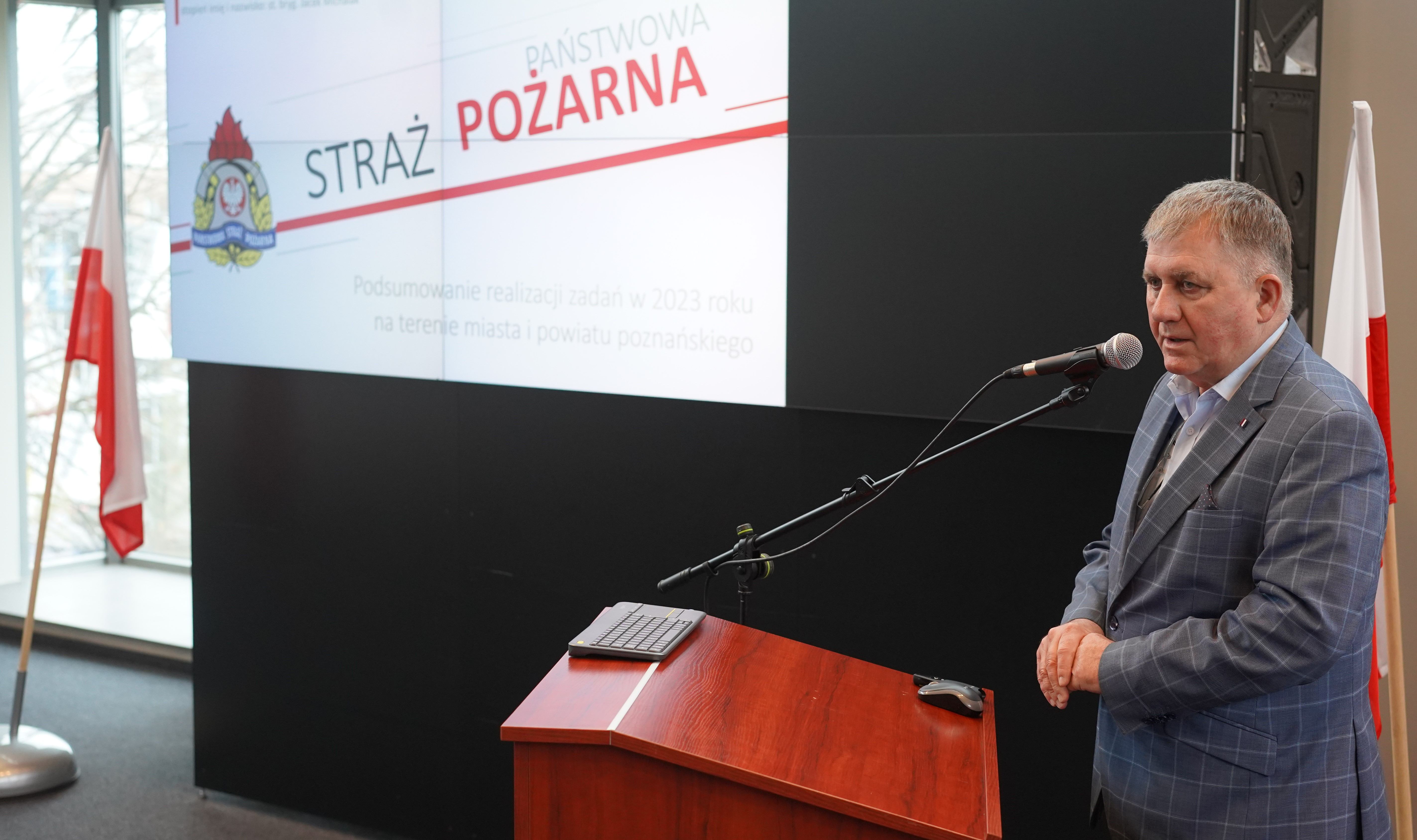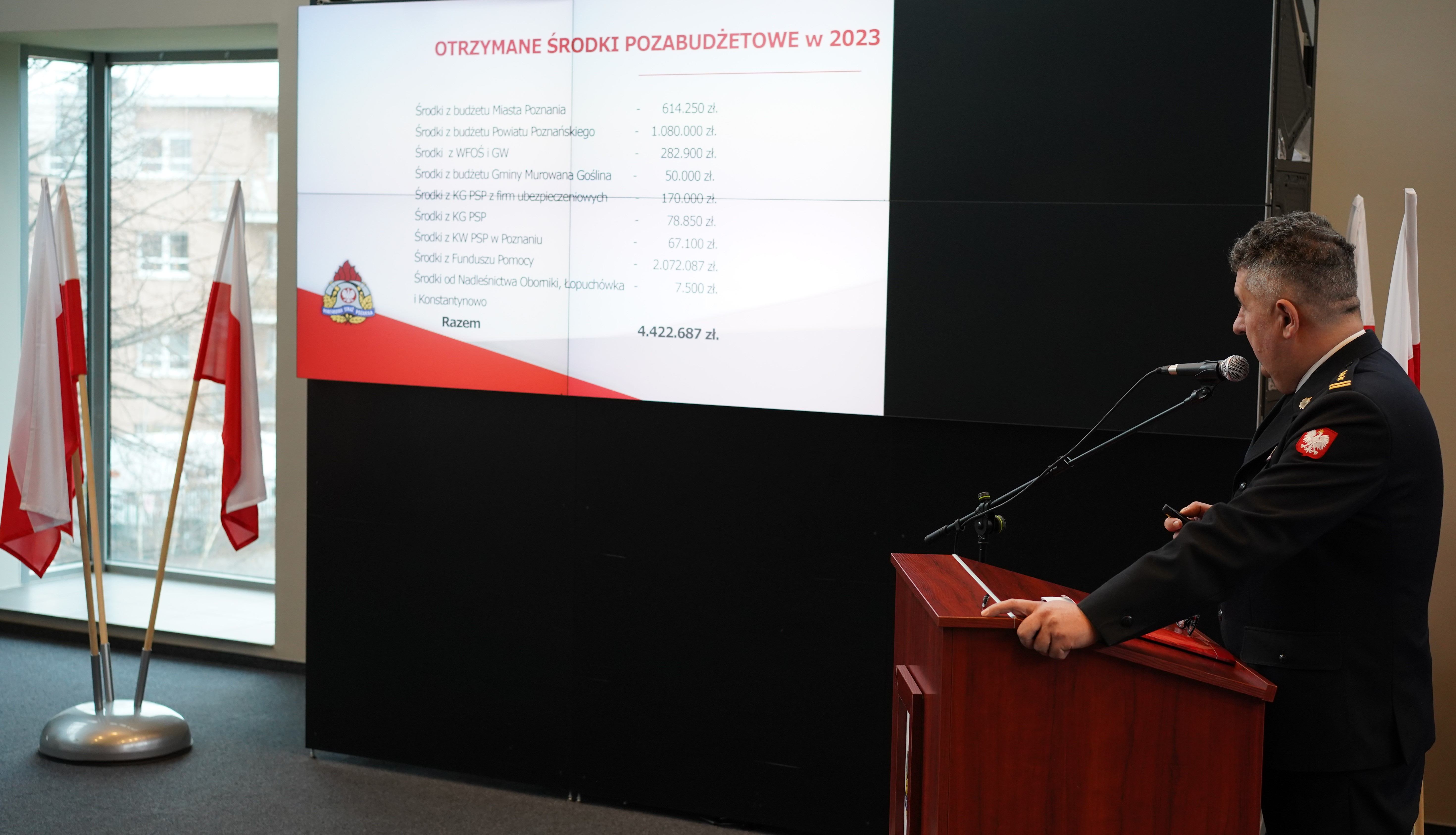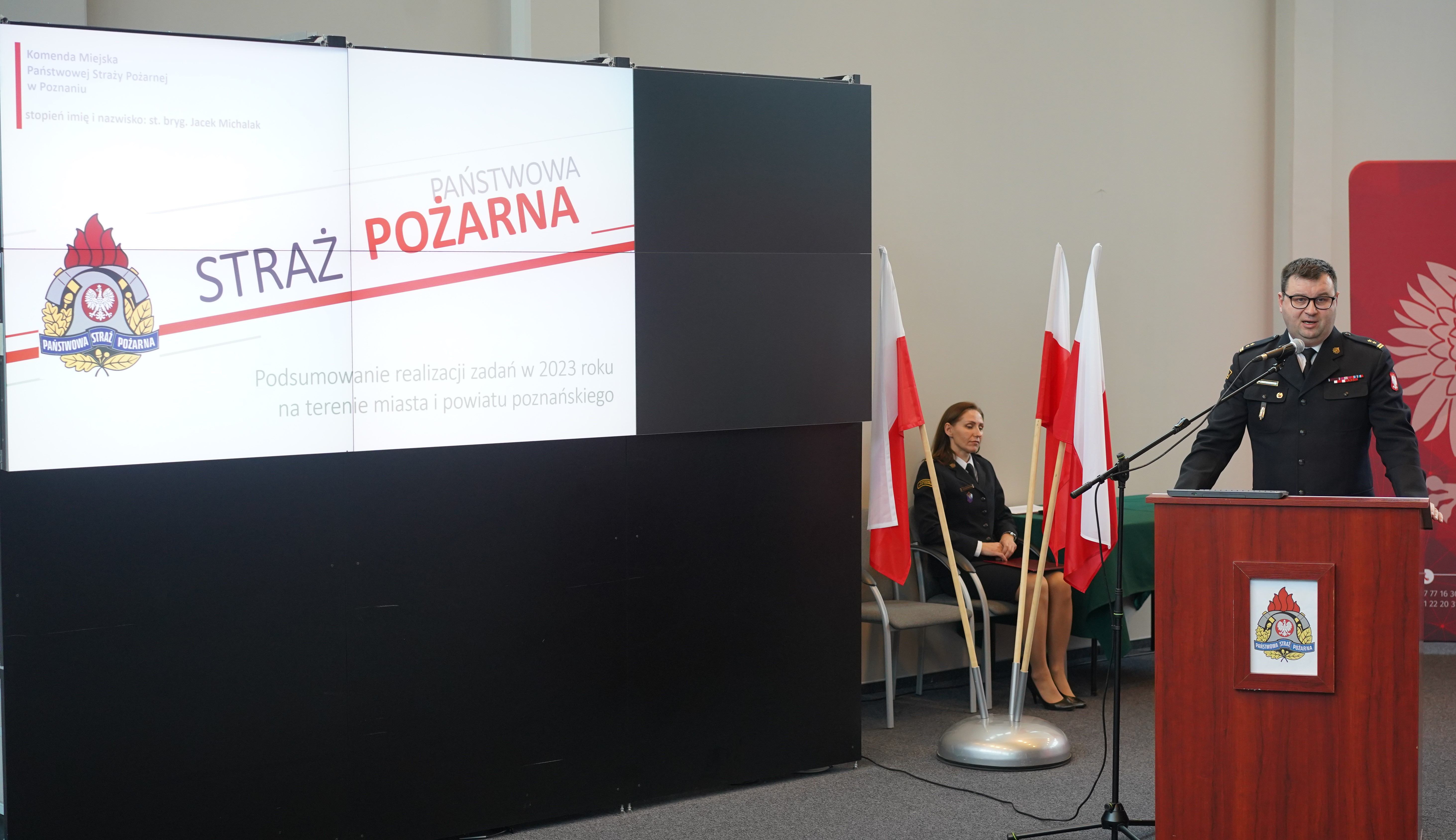 W części sprawozdawczej jako pierwszy głos zabrał Komendant Miejski PSP w Poznaniu st. bryg. Jacek Michalak, który przedstawił sprawozdanie w obszarze kadrowo-finansowym oraz nakreślił najważniejsze cele strategiczne na 2024 r. Następnie zastępca Komendanta Miejskiego PSP st. bryg. Damian Jankowiak przedstawił dokonania Państwowej Straży Pożarnej w Poznaniu w obszarze logistycznym. Sprawozdanie w obszarze prewencyjnym zaprezentował mł. bryg. Bartosz Kozłowski – Naczelnik Wydziału Kontrolno-Rozpoznawczego, a w obszarze operacyjnym mł. bryg. Kamil Witoszko – Naczelnik Wydziału Operacyjno-Szkoleniowego.