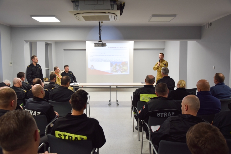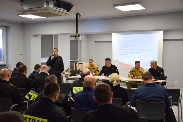 Głównym celem spotkania było podsumowanie współpracy PSP z OSP za 2022 rok. Podczas całego przedsięwzięcia poruszone zostały kwestie dotyczące m. in. statystyk za ubiegły rok, dotacji oraz przekazanego sprzętu do OSP oraz spraw operacyjno – szkoleniowych wraz z planami na 2023 rok, które przedstawił Naczelnik Wydziału Operacyjno – Szkoleniowego. Następnie st. str. Damian Olejniczak ze stanowiska ds. BHP oraz ochrony informacji niejawnych, przybliżył sprawy BHP w OSP, a także wdrażanie „programu profilaktyki antynowotworowej”, w zakresie podziału obiektów na tzw. „strefę brudną” i „strefę czystą”.