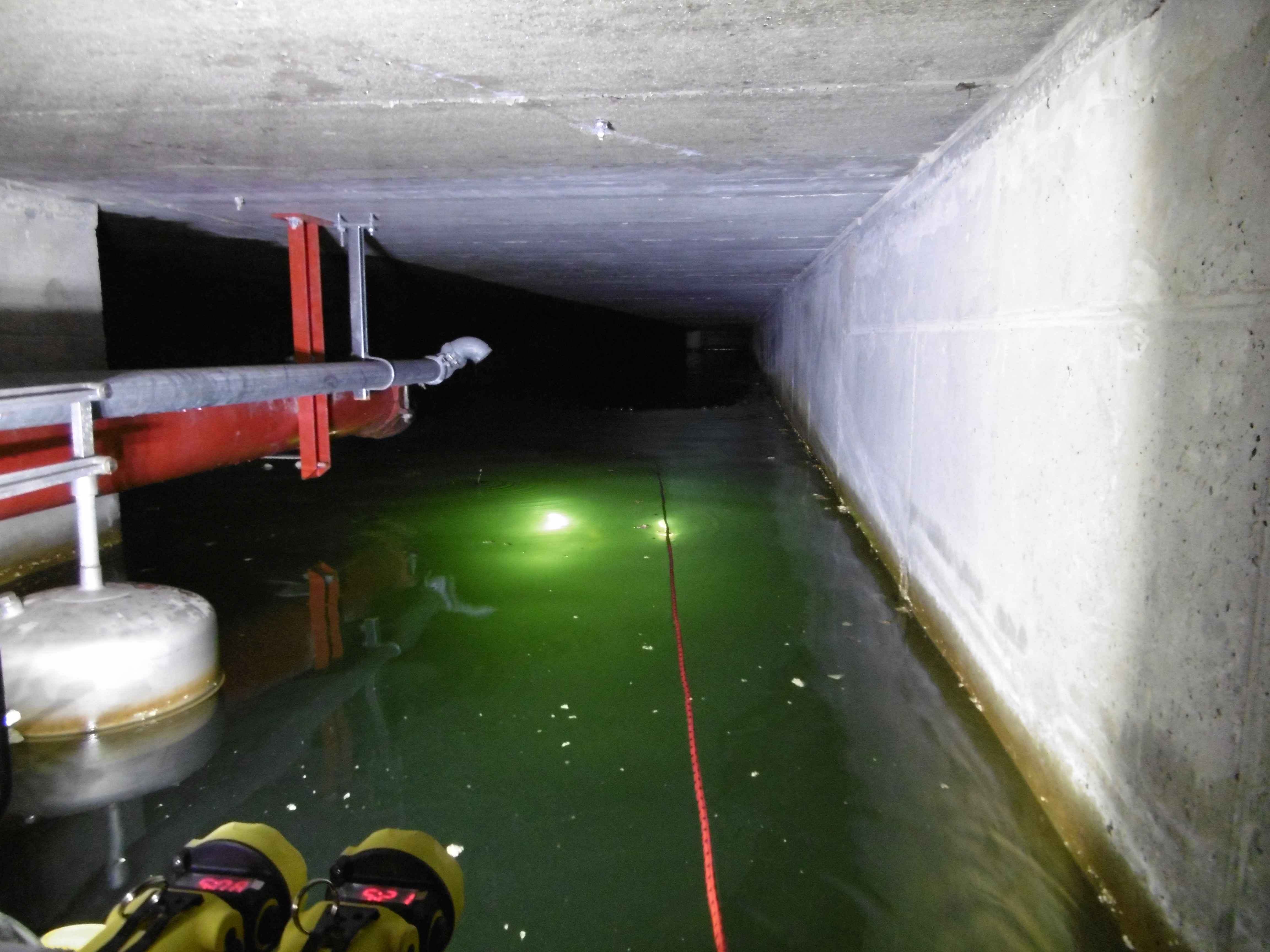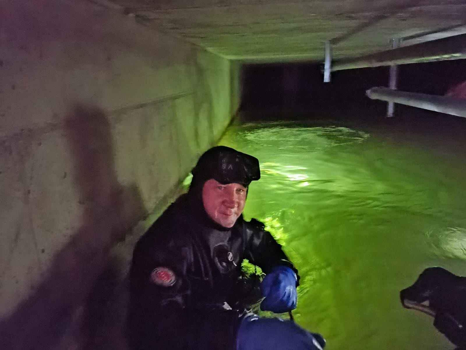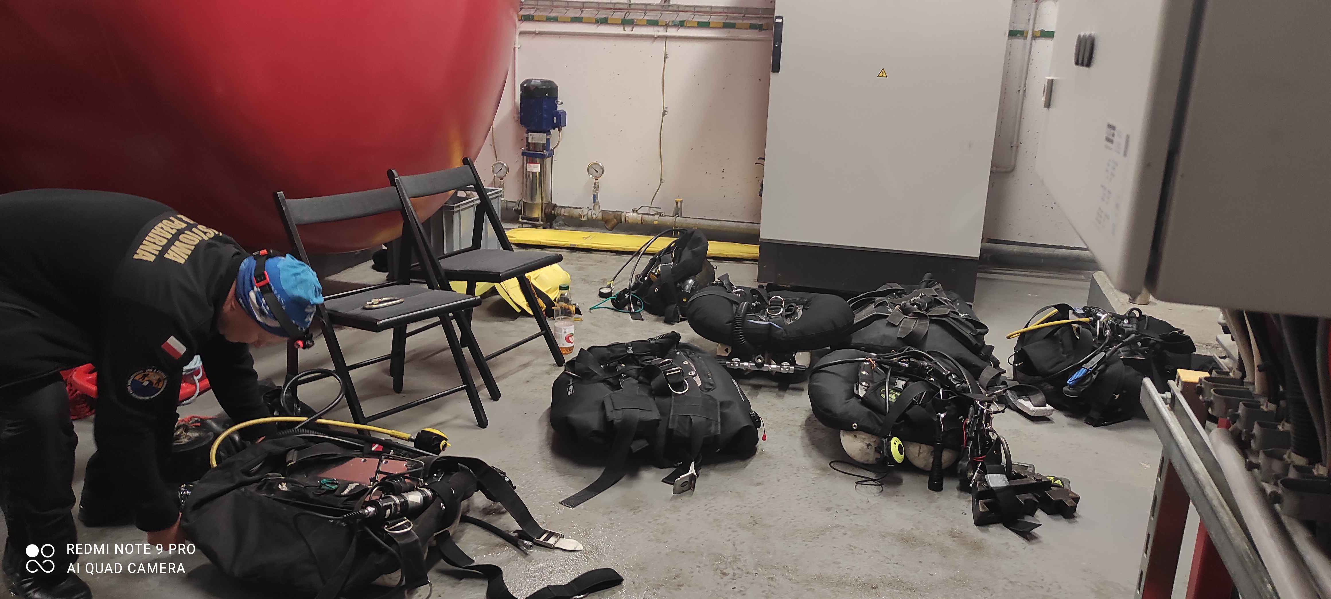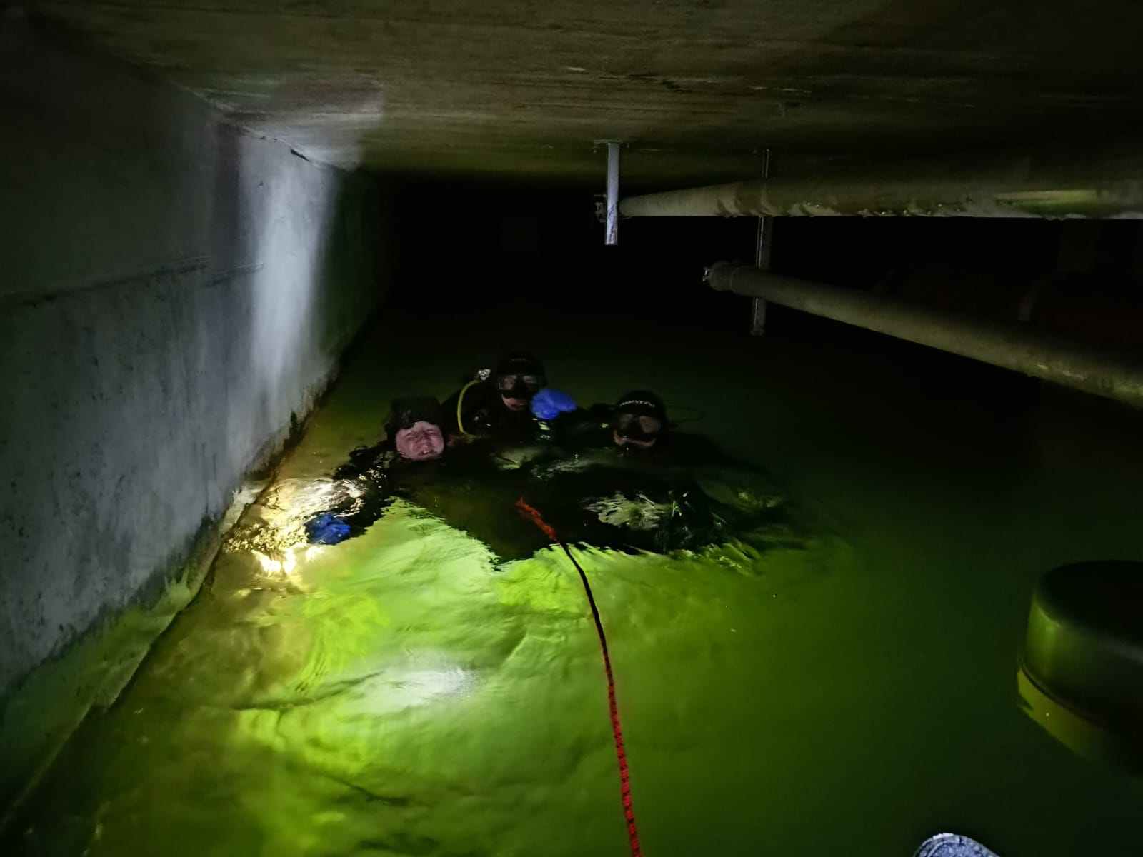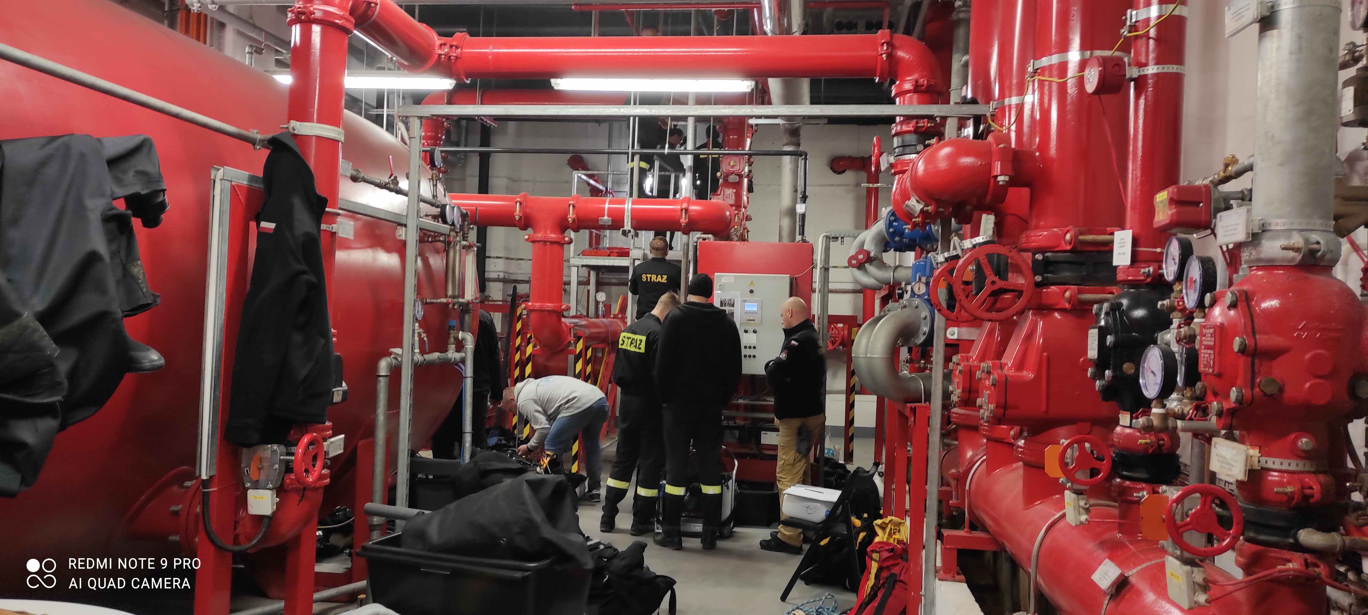 i przeanalizowaniem nietypowego miejsca, w którym może występować zagrożenia dla życia i zdrowia ludzi z uwagi na cykliczne monitorowanie przez inne osoby stanu technicznego tych obiektów. Działania rozpoczęto po godz. 22.00 i zamknięciu galerii oraz otrzymaniu informacji o wstrzymaniu pracy wszystkich urządzeń zamontowanych w zbiorniku, odłączeniu zasilania i zamknięciu na kłódkę zaworów sterujących, a klucza przekazanie w dyspozycję strażaków. Ponadto, zapewniono stały kontakt z dyżurem technicznym pracującym przez całą noc. Następnie sprawdzono zawartość tlenu w zbiorniku przy pomocy uprzednio przygotowanych pojemników oraz środowisko wodne pod kątem bezpieczeństwa i mogących wystąpić zagrożeń podczas nurkowania. Wypracowano techniki dotarcia do wewnątrz każdego zbiornika i zbudowanie prowizorycznych trapów umożliwiających ubranie się w sprzęt nurkowy oraz wejście i wyjście ze zbiorników z uwzględnieniem sytuacji pilnej ewakuacji nurka. Z uwagi na fakt, że prace wymagały dużego skupienia prace podzielono na dwa niezależne zespoły, którymi dowodzili kierujący pracami podwodnymi, a całość koordynował kierownik ćwiczeń. Podczas działań zadaniem nurków było dokonanie zwiadu nurkowego oraz inspekcji zbiorników z materiałem filmowym włącznie.