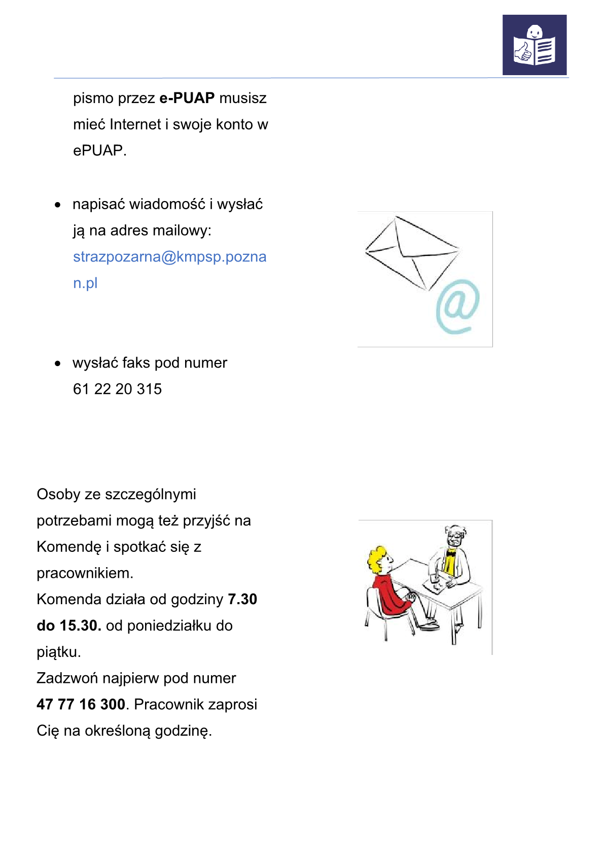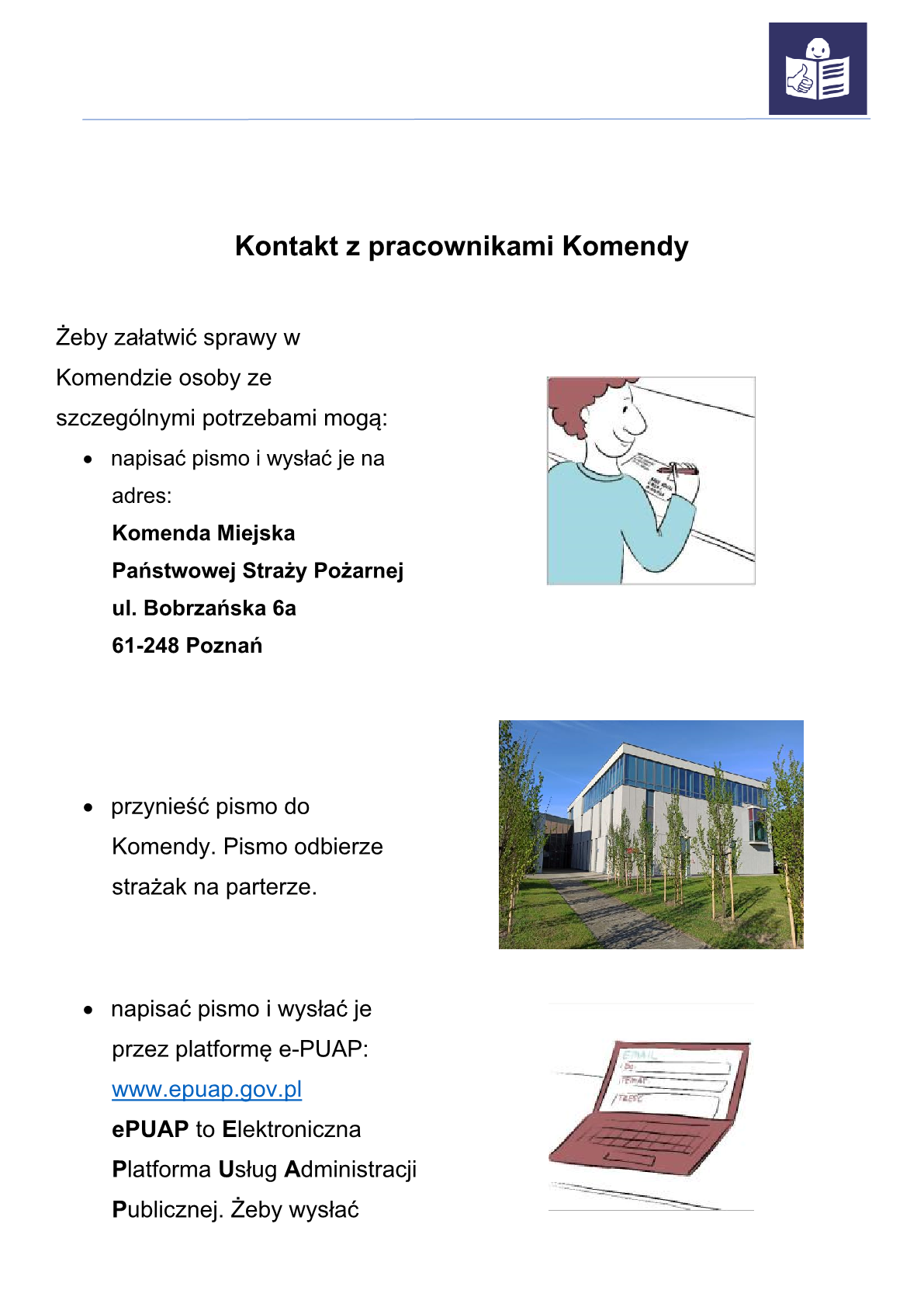 Materiał przygotowany wspólnie z Polskim Stowarzyszeniem na rzecz Osób z Niepełnosprawnością Intelektualną zawierający podstawowe informacje dotyczące Komendy Miejskiej PSP w Poznaniu.