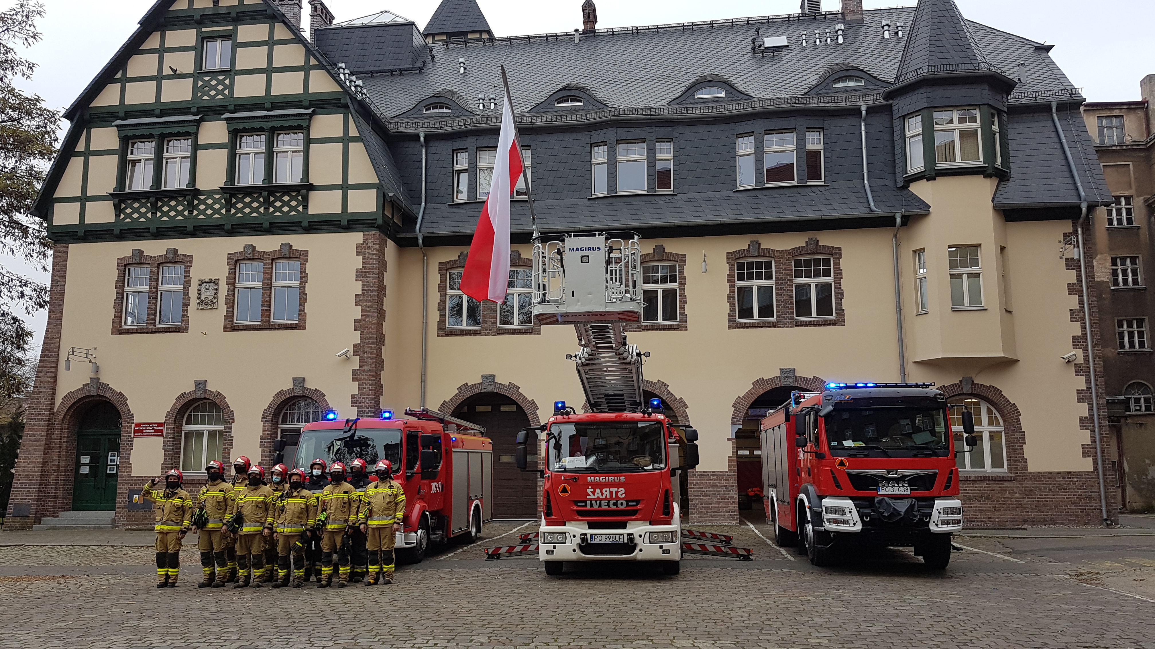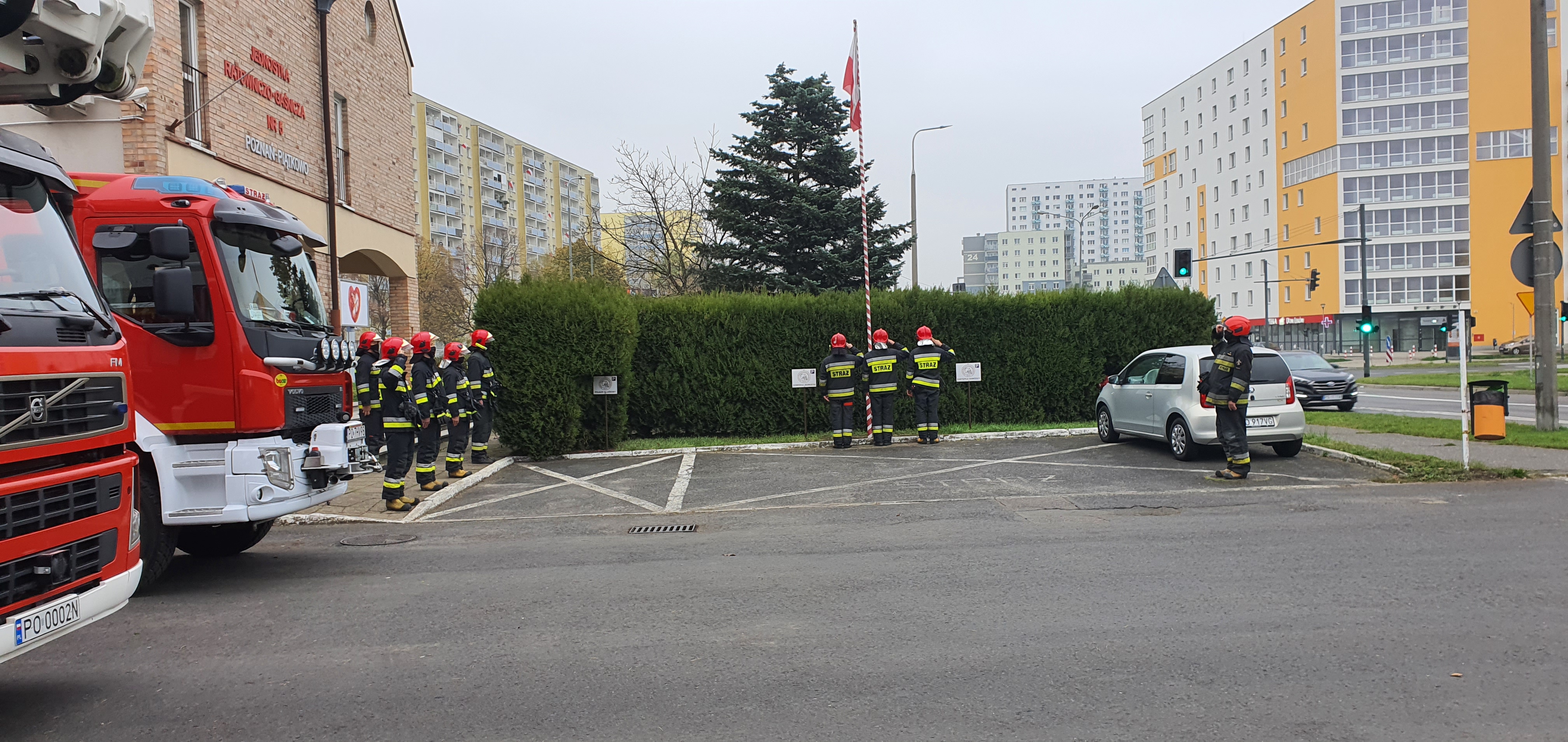 W dzień rocznicy odzyskania przez Polskę niepodległości, funkcjonariusze Jednostek Ratowniczo-Gaśniczych Komendy Miejskiej Państwowej Straży Pożarnej w Poznaniu wzięli udział w akcji Niepodległa do Hymnu.