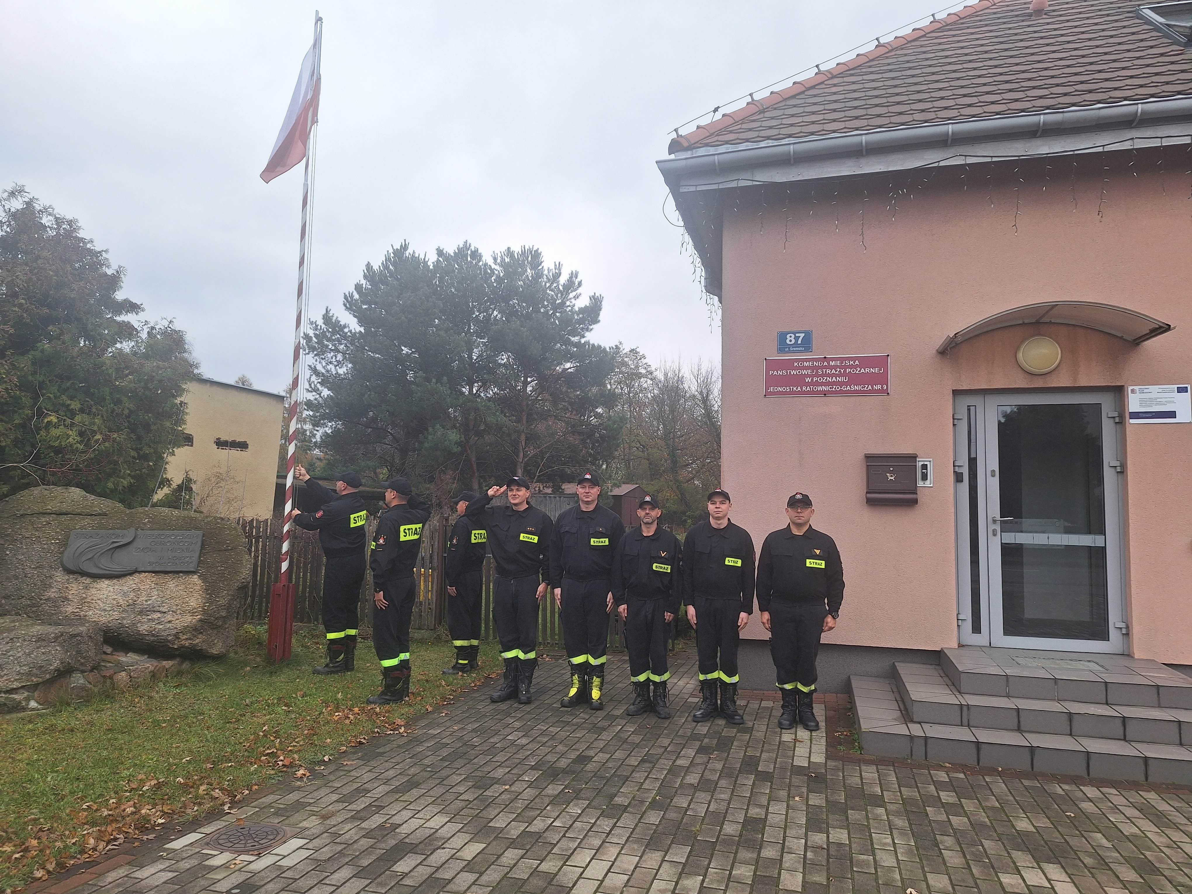 W dniu rocznicy odzyskania przez Polskę niepodległości, funkcjonariusze Jednostek Ratowniczo-Gaśniczych Komendy Miejskiej Państwowej Straży Pożarnej w Poznaniu zorganizowali uroczyste zbiórki. Podczas tych wydarzeń wciągnięto flagi na maszty, a także odśpiewano Hymn Narodowy.