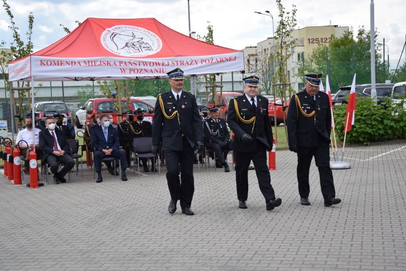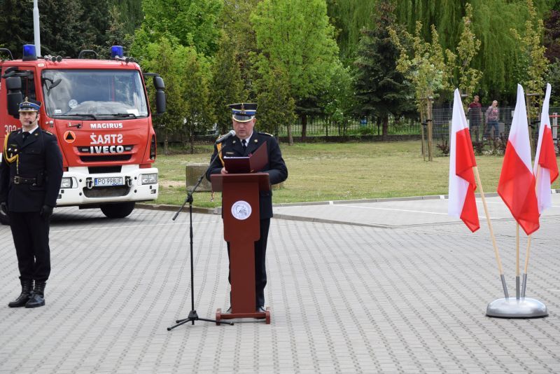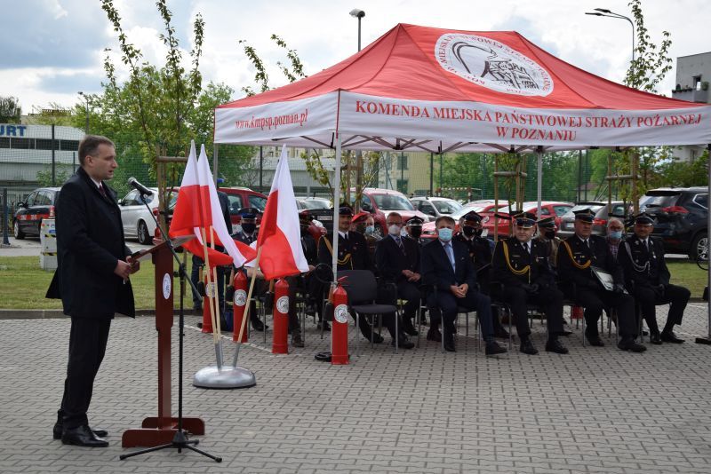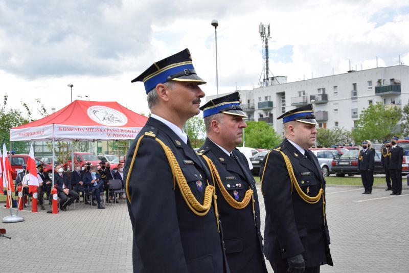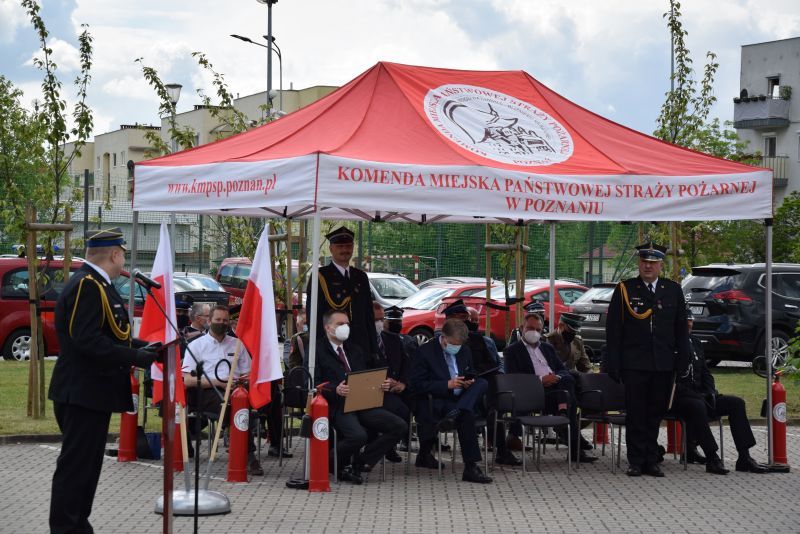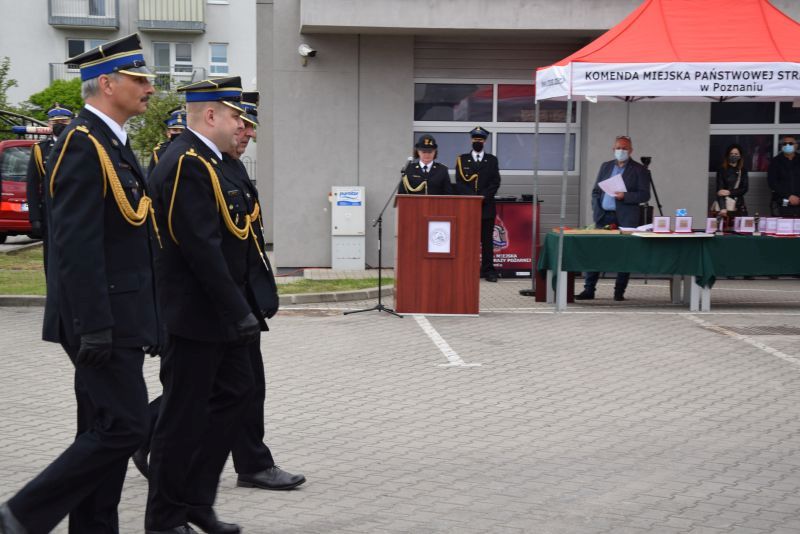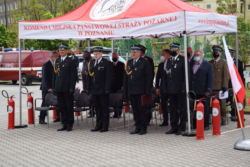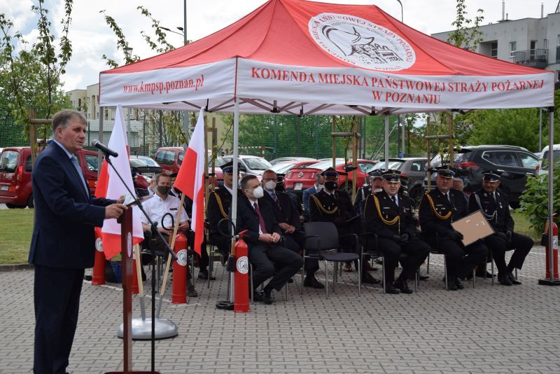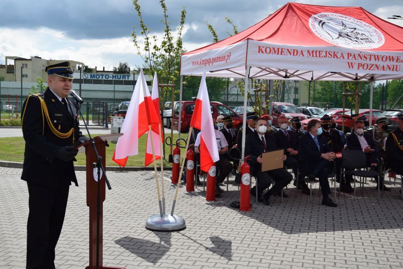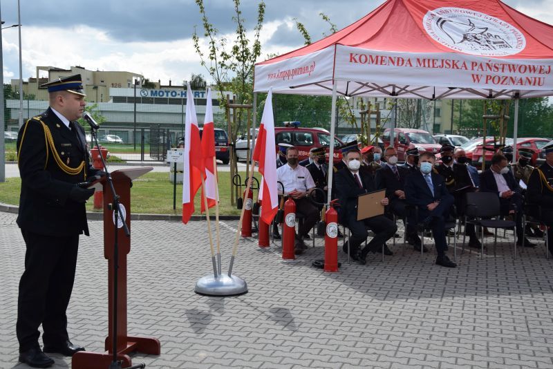 Gospodarz uroczystości Komendant Miejski PSP w Poznaniu st.bryg. Jacek Michalak w swoim przemówieniu podziękował przybyłym gościom, strażakom i pracownikom cywilnym za udział w tym szczególnym dniu.