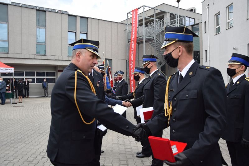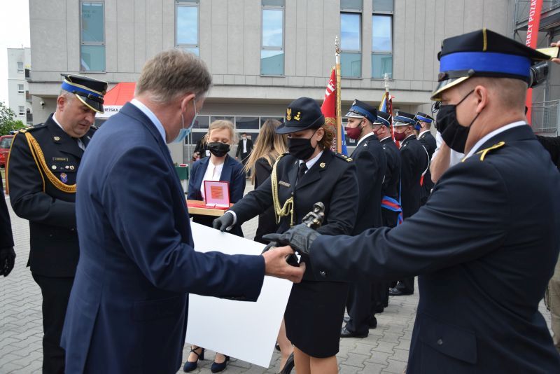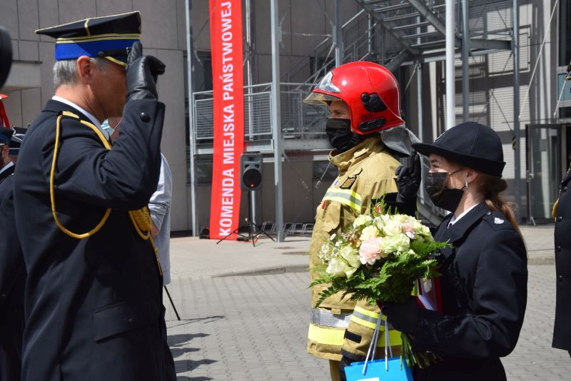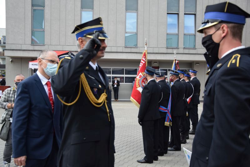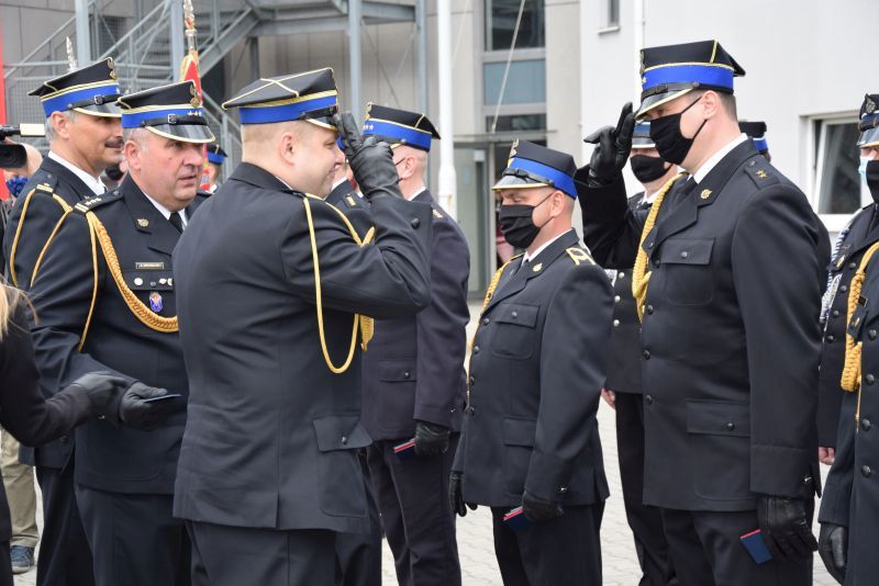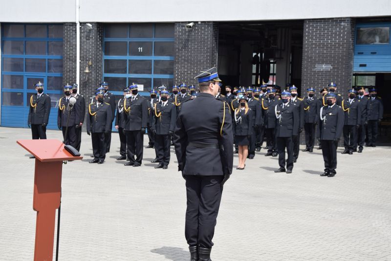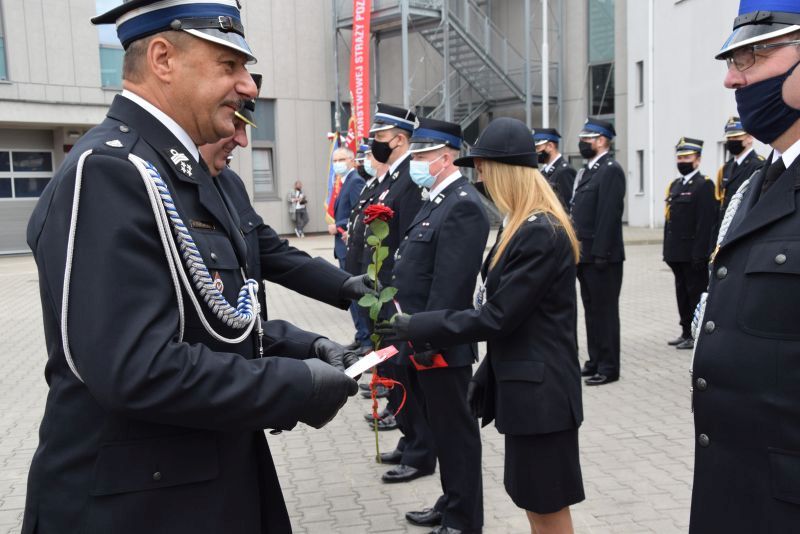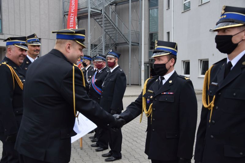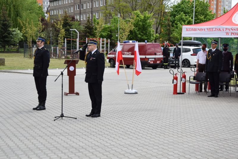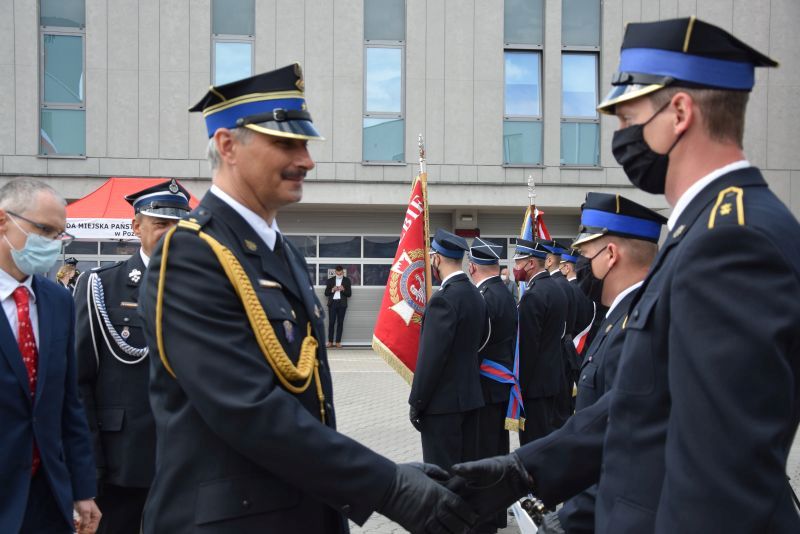 Gospodarz uroczystości Komendant Miejski PSP w Poznaniu st.bryg. Jacek Michalak w swoim przemówieniu podziękował przybyłym gościom, strażakom i pracownikom cywilnym za udział w tym szczególnym dniu.