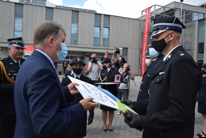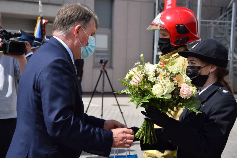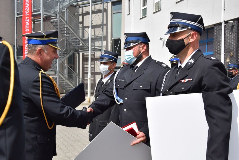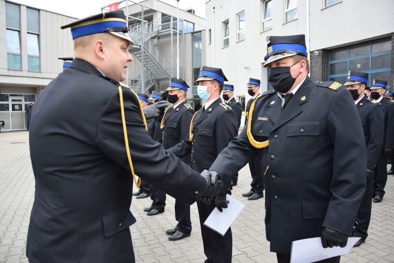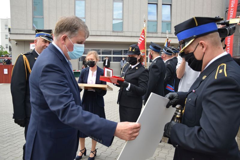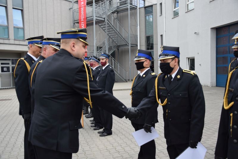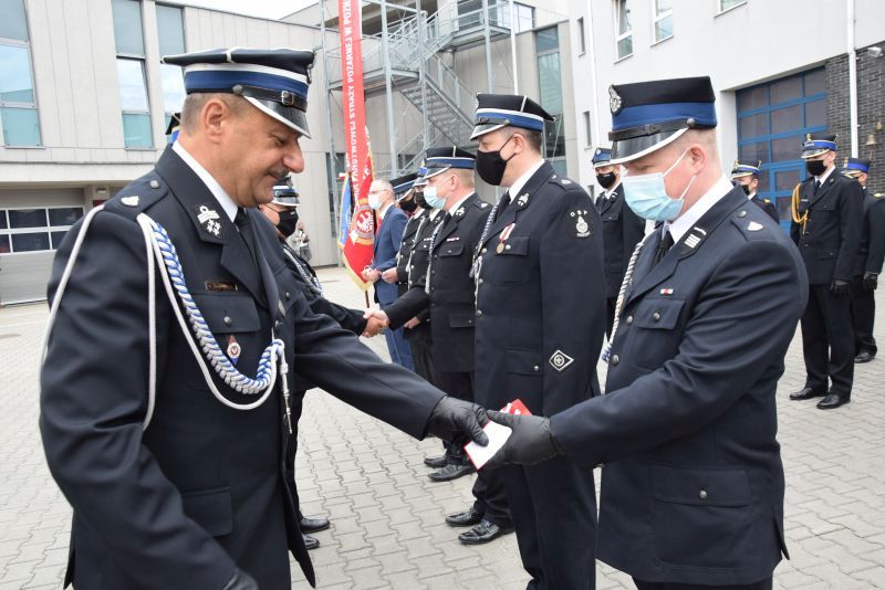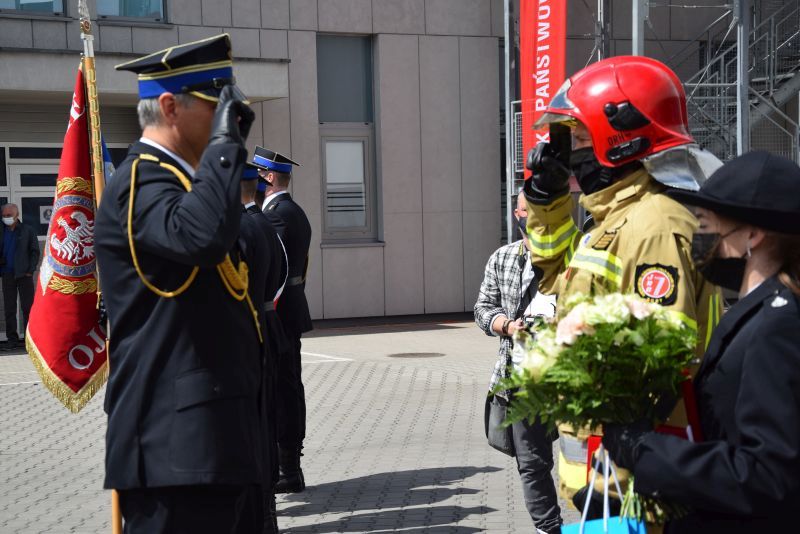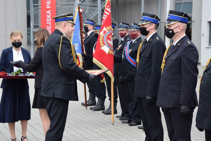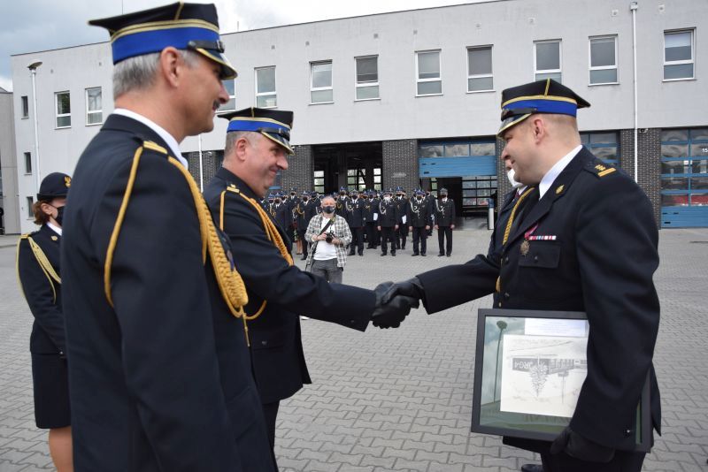 Gospodarz uroczystości Komendant Miejski PSP w Poznaniu st.bryg. Jacek Michalak w swoim przemówieniu podziękował przybyłym gościom, strażakom i pracownikom cywilnym za udział w tym szczególnym dniu.