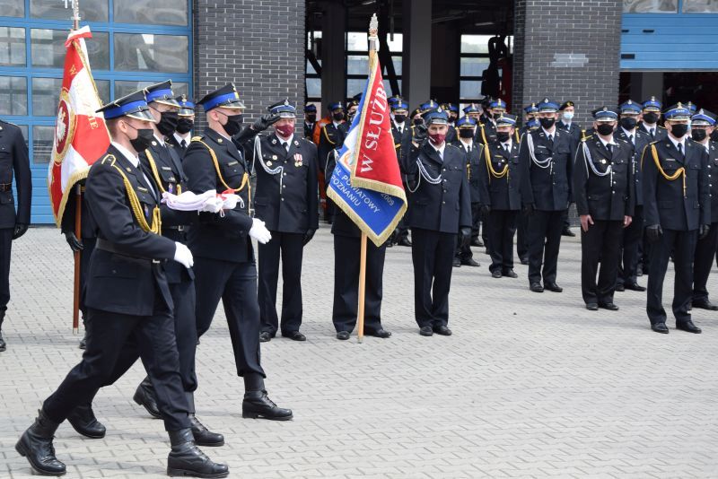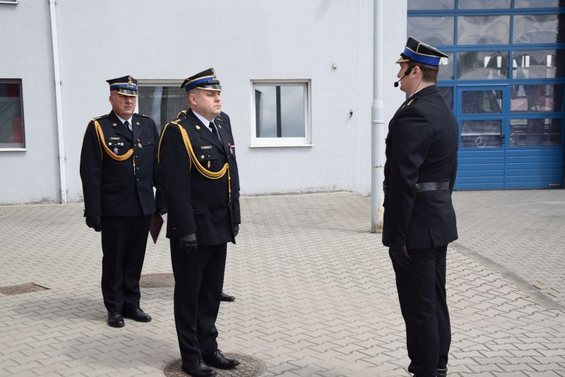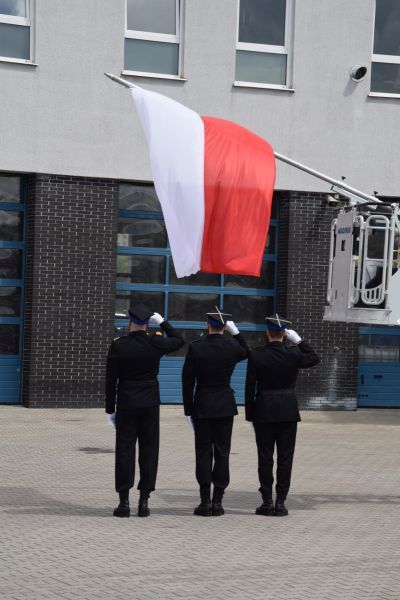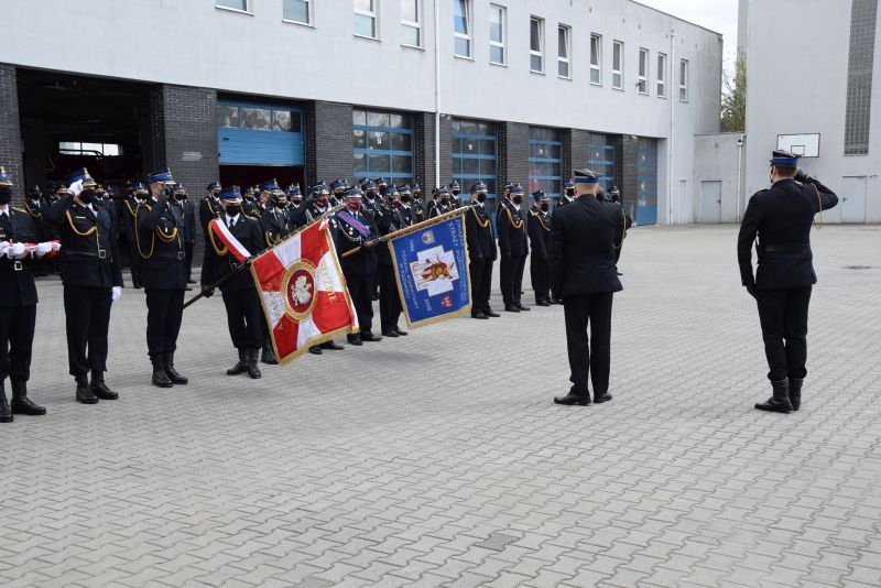 Meldunek Zastępcy Wielkopolskiego Komendanta Wojewódzkiego PSP st.bryg. Jarosławowi Zamelczykowi złożył dowódca uroczystości st. kpt. Adrian Fiszer.