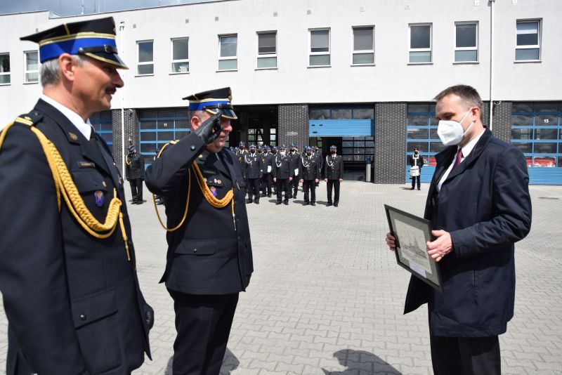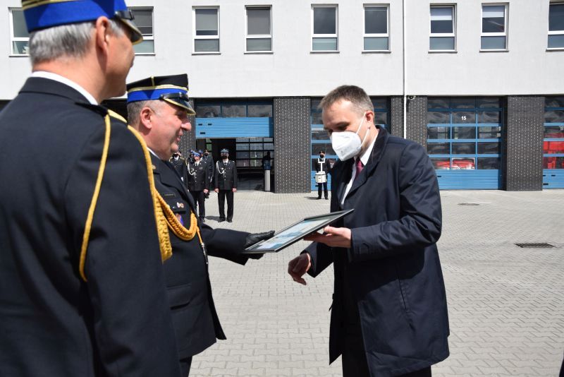 Komendant Miejski PSP w Poznaniu st.bryg. Jacek Michalak w podziękowaniu za wsparcie finansowe budowy strażnicy Jednostki Ratowniczo-Gaśniczej nr 4 w Poznaniu przekazał symboliczne ryciny z wizerunkiem nowej strażnicy dla: Wielkopolskiego Komendanta Wojewódzkiego, Prezydenta Miasta Poznania oraz Starosty Poznańskiego.