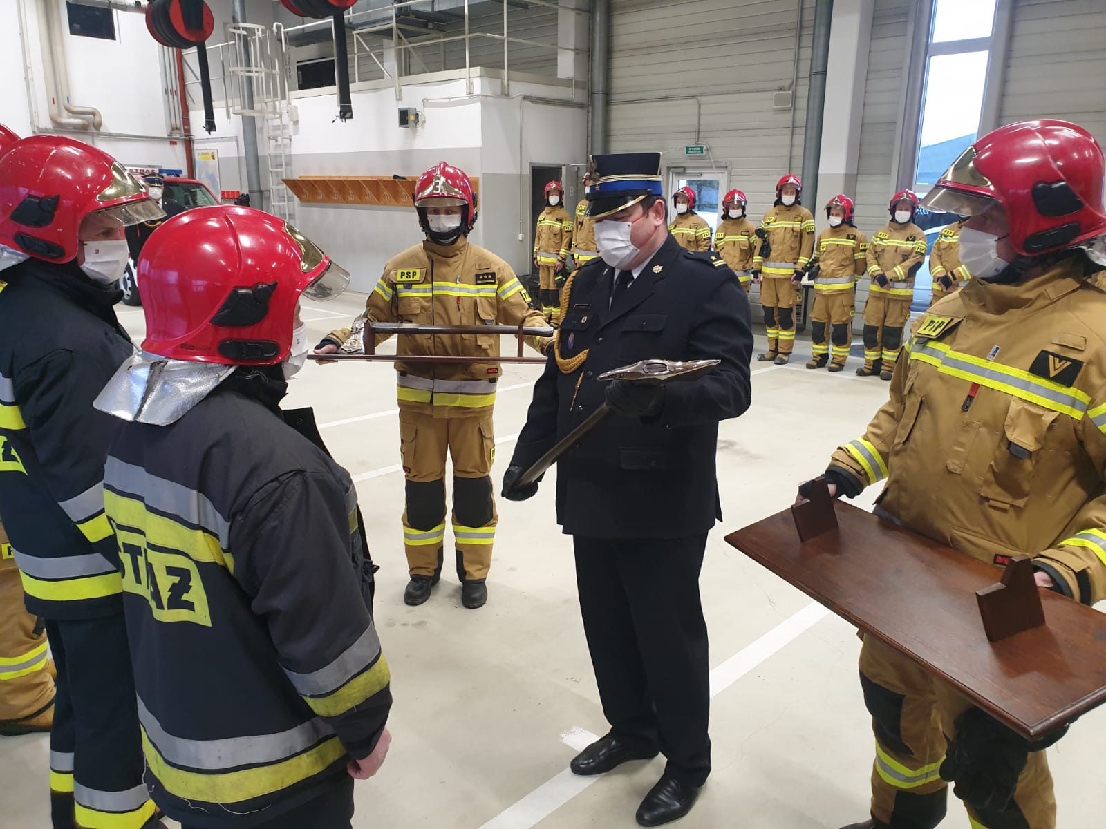 Uroczystość rozpoczęła się od przemówienia Komendanta Miejskiego, który przybliżył przebieg służby funkcjonariuszy oraz podziękował za zaangażowanie, nienaganną służbę i poświęcenie w codziennej realizacji obowiązków służbowych. Następnie dowódca jednostki dziękując za współpracę i wkład włożony w rozwój jednostki w imieniu wszystkich strażaków przekazał „naszym emerytom” pamiątkowe topory.