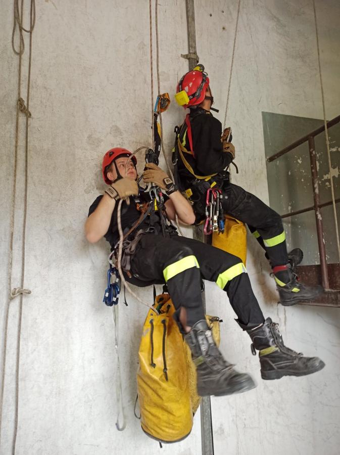 Zgodnie z Poleceniem służbowym D-cy JRG we wszystkie dni tygodnia oprócz niedziel odbywają się zajęcia z ratownictwa wysokościowego zarówno zakresu podstawowego jak i specjalistycznego. Dzisiaj ratownicy doskonalili techniki poruszania się w układach pionowych. Na szczęście dach nad wspinalnią jest szczelny i można bez względu na warunki atmosferyczne doskonalić swoje umiejętności.