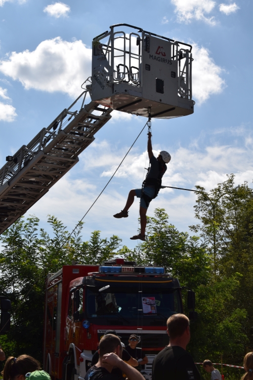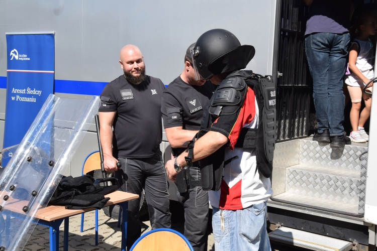 Wspaniała pogoda przyciągnęła do Bolechowa tłumy mieszkańców z powiatu. Tak jak w latach ubiegłych na wszystkich czekała moc atrakcji. Punkt z książkami, malowanie twarzy czy dmuchańce sprawiły wielką uciechę najmłodszym. Mieszkańcy licznie brali udział w konkursach, widowiskowych pokazach psów współpracujących ze służbami mundurowymi oraz prezentacjach możliwości strażaków, policjantów i strażników granicznych. Służby przygotowały stoiska, gdzie edukowały jak wzywać pomoc oraz w jaki sposób radzić sobie z zagrożeniami. Dużą atrakcją była możliwość wejścia do wozu strażackiego czy policyjnego. Popularnością cieszył się również zadymiony namiot, gdzie strażacy uczyli, jak zachować się w czasie niebezpieczeństwa pożarowego. Zainteresowani mogli „od kuchni” poznać pracę WOPR, który dzięki wsparciu finansowemu powiatu od niedawna korzysta z nowoczesnego drona z kamerą termowizyjną. Niewątpliwą atrakcją była też degustacja kuchni brazylijskiej.