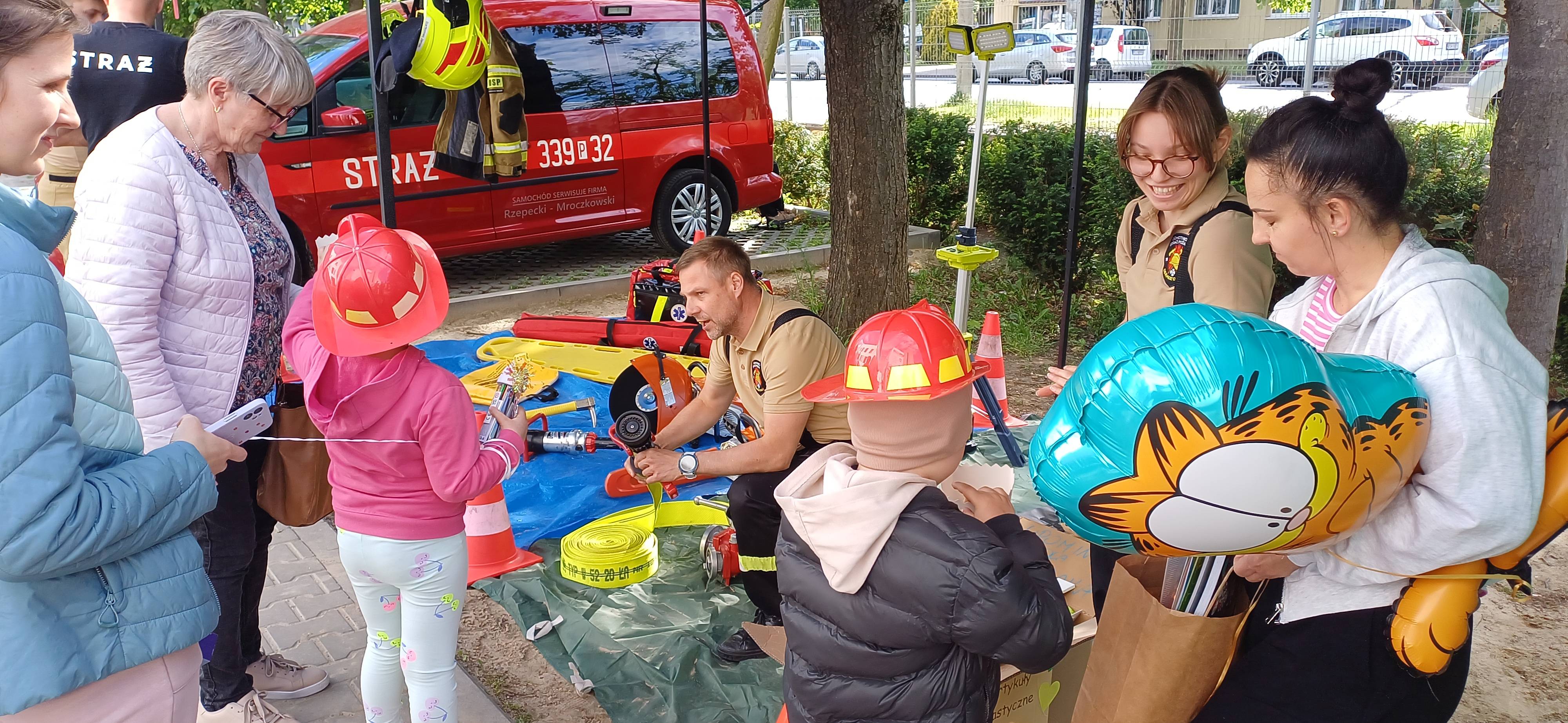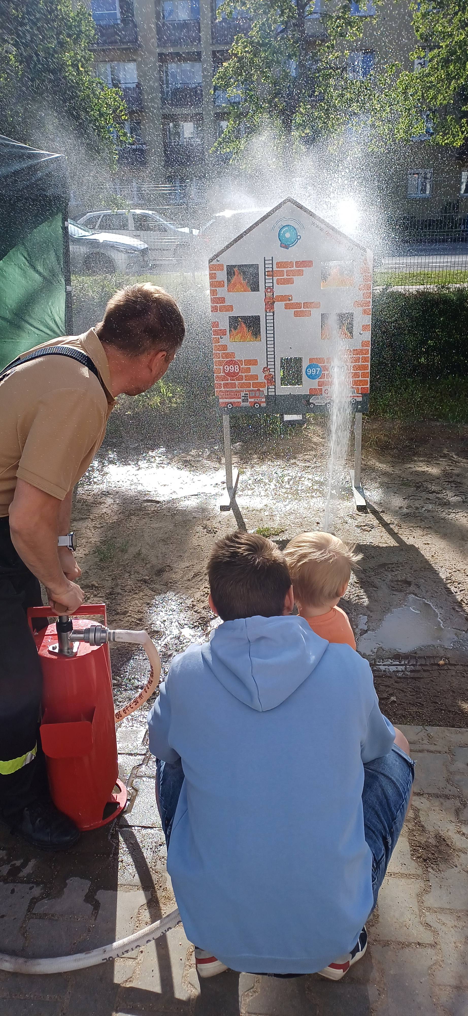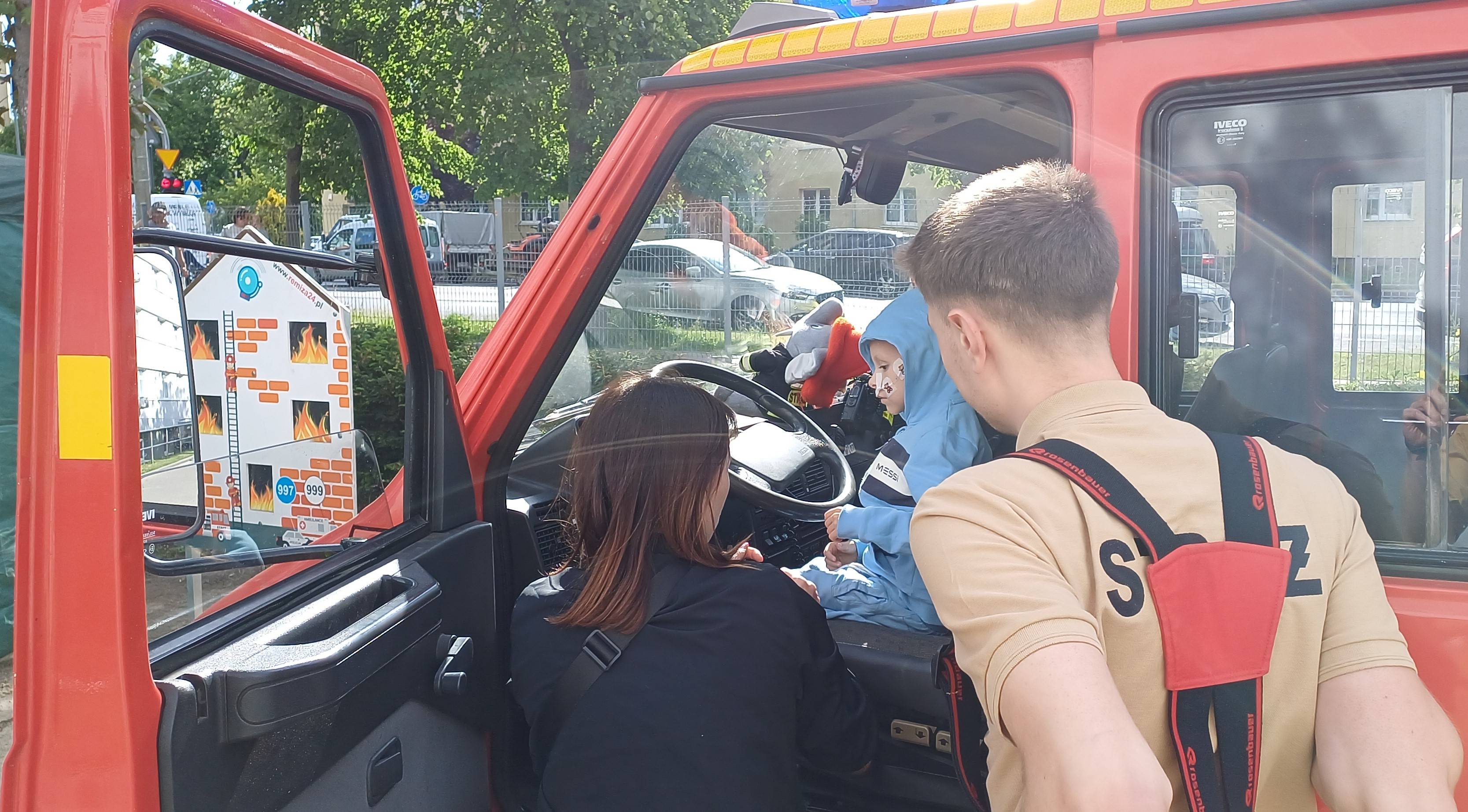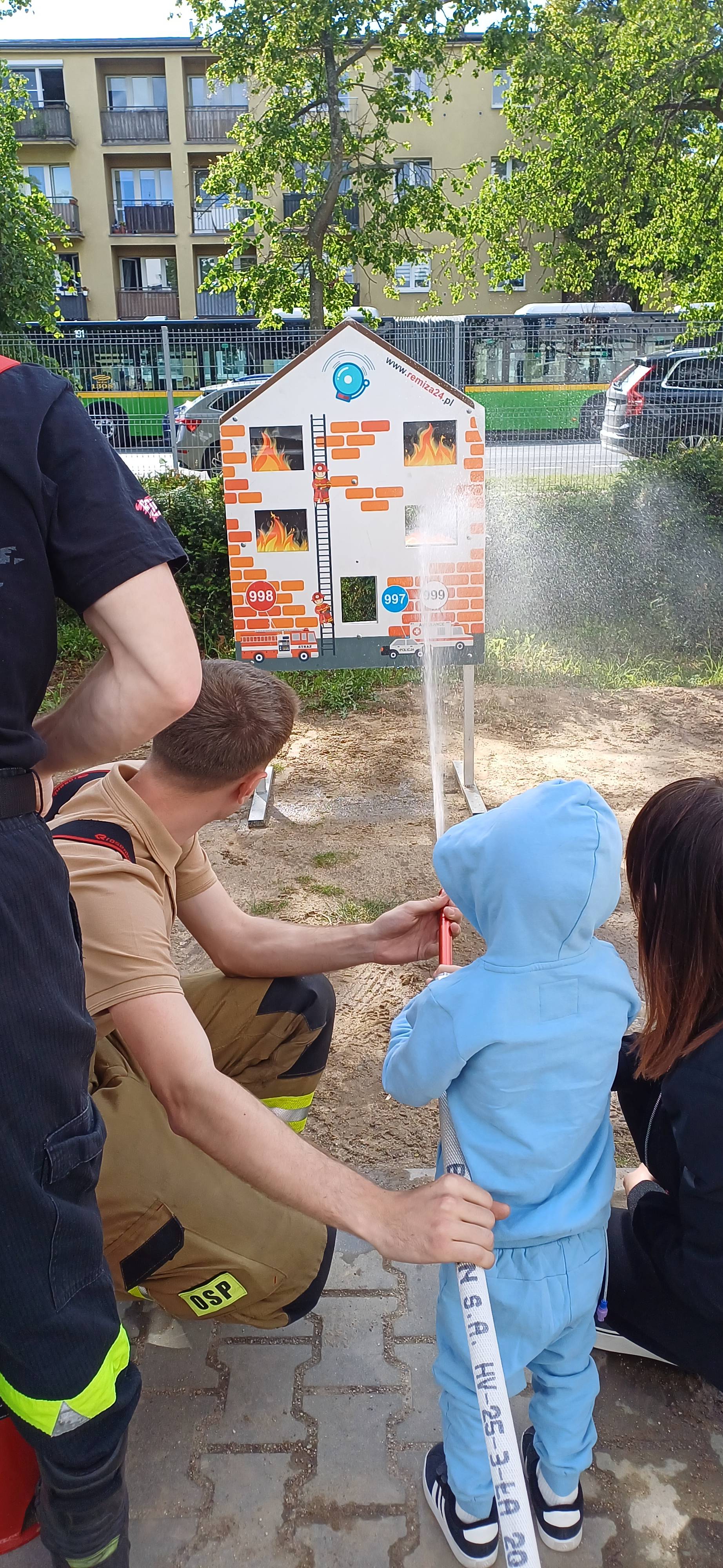 Atrakcji dla dzieci i rodziców było co nie miara. Funkcjonariusze Państwowej Straży Pożarnej i druhowie Ochotniczych Straży Pożarnych umożliwili dzieciom wcielenie się w rolę strażaka! Dzieci skutecznie gasiły pożar domku oraz pracowały z psim ratownikiem Dexterem.