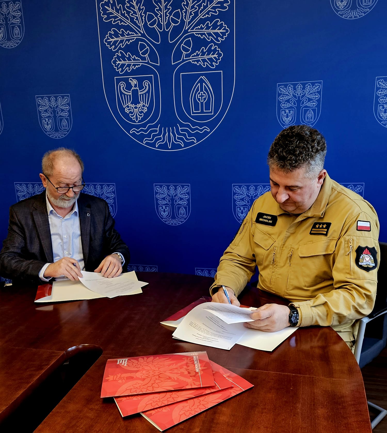 Podpisanie porozumienia ws. powtórnego włączenia Jednostki Ochotniczej Straży Pożarnej w Plewiskach do Krajowego Systemu Ratowniczo-Gaśniczego