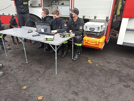 W dniu 23 października 2020 roku strażacy ze zmiany służbowej "A", udali się w godzinach porannych na ćwiczenia do pobliskiego lasu, przy jeziorze Rusałka. Zmiana służbowa wykonywała ćwiczenia związane z lokalizacją osób poszkodowanych w terenie. Wśród strażaków był również przewodnik z psem ratowniczym. Na początku ćwiczeń omówiono zasady poruszania się po lesie oraz zasady związane z bezpieczeństwem działań na takich terenach. Przy pomocy urządzeń GPS oraz programu komputerowego, który wskazuje nam przebytą trasę podczas poszukiwań, wykonaliśmy pozorację przeszukania określonego wcześniej obszaru. Pierwsza grupa wraz z pozorantem dokonała przeszukania oraz "pozostawienia" pozoranta w obszarze działań. Kolejna grupa w skład której wchodził przewodnik z psem dokonała przeszukania wskazanego przez koordynatora obszaru. Nasz pies wykazał się niezawodnym węchem i pozorant został szybko odnaleziony. Po powrocie do miejsca zbiórki, ćwiczenia zostały przerwane przez zadysponowanie zastępu GBA do zdarzenia w Lusowie. Ćwiczenia podsumowano w bazie - omówiono, przeanalizowano trasy oraz plusy i minusy takich działań.