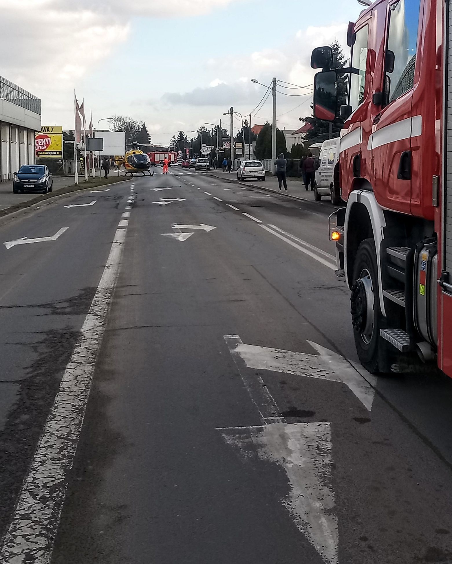 Osoba poszkodowana została przetransportowana na wniosek lekarza do śmigłowca, który zabrał ją do szpitala przy ulicy Szwajcarskiej w Poznaniu.