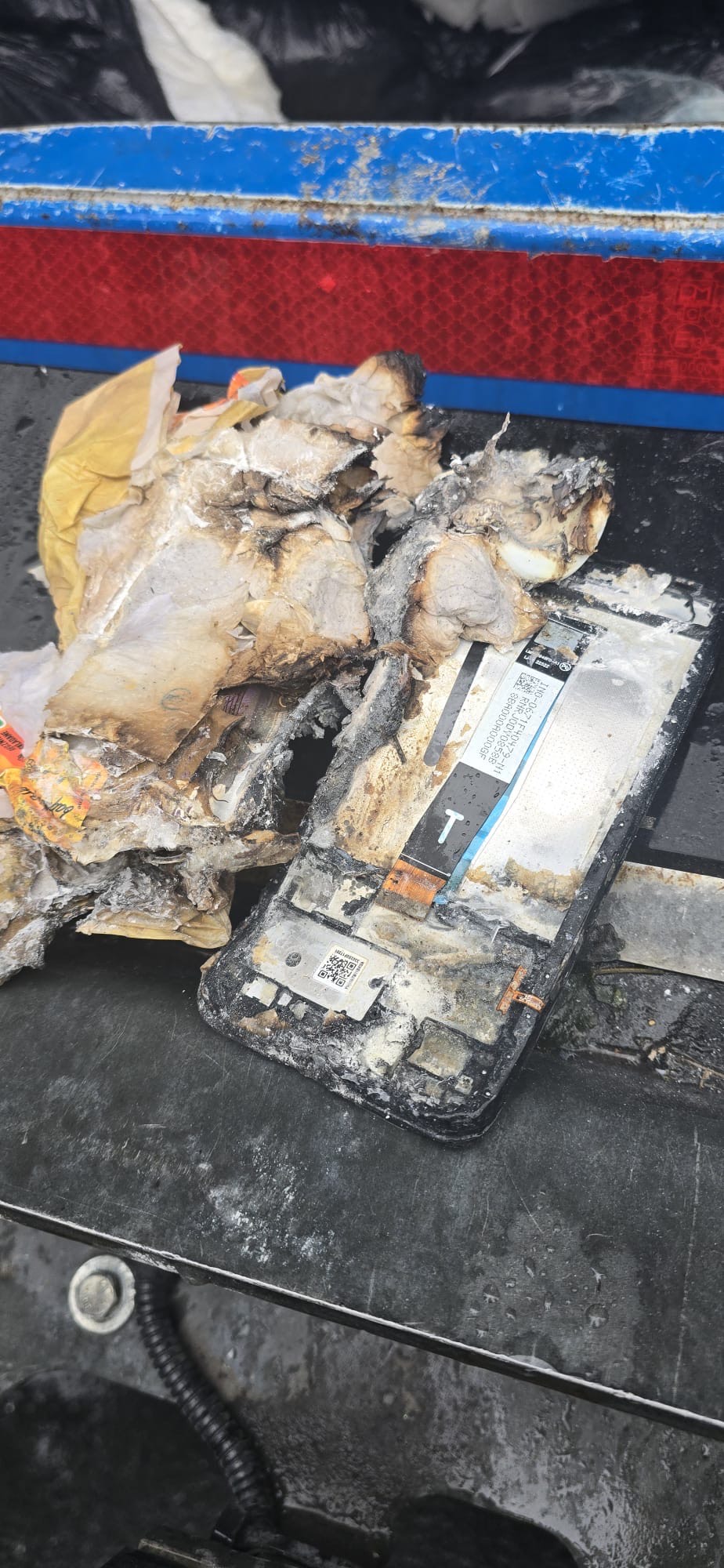 Pożar baterii telefonu komórkowego w śmieciarce