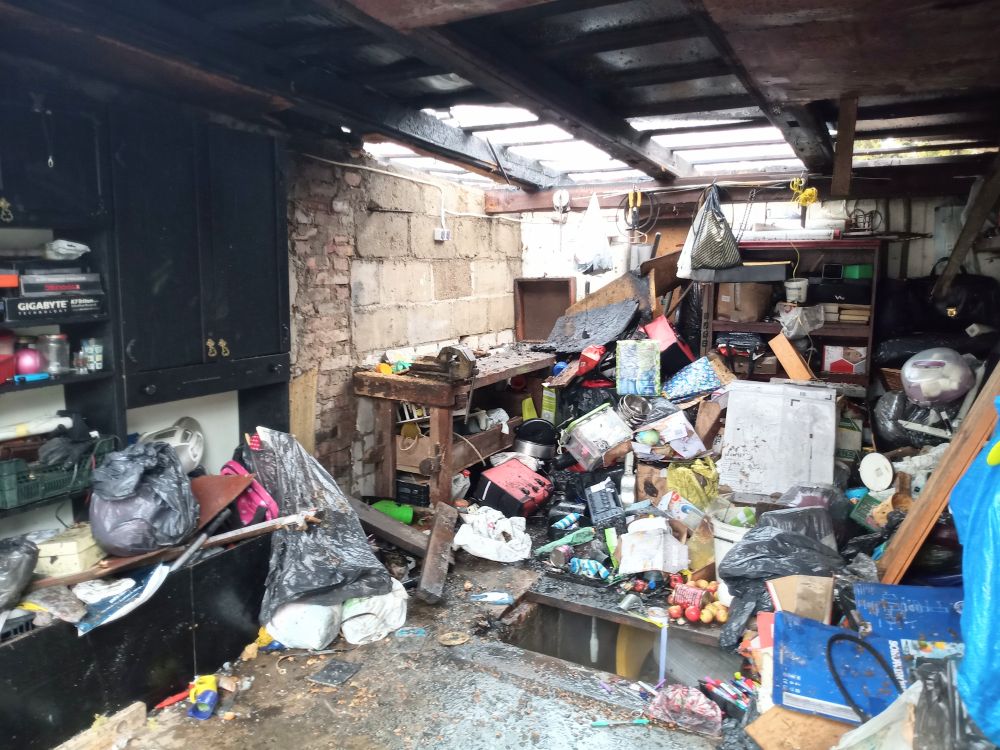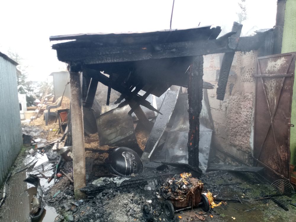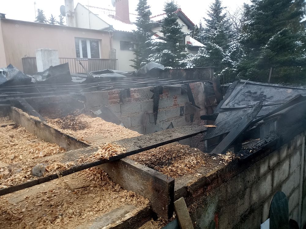 Po przybyciu zastępów straży pożarnych na miejsce zdarzenia stwierdzono, że pali się wolnostojący budynek garażu wraz z pomieszczeniem przyległym do niego.