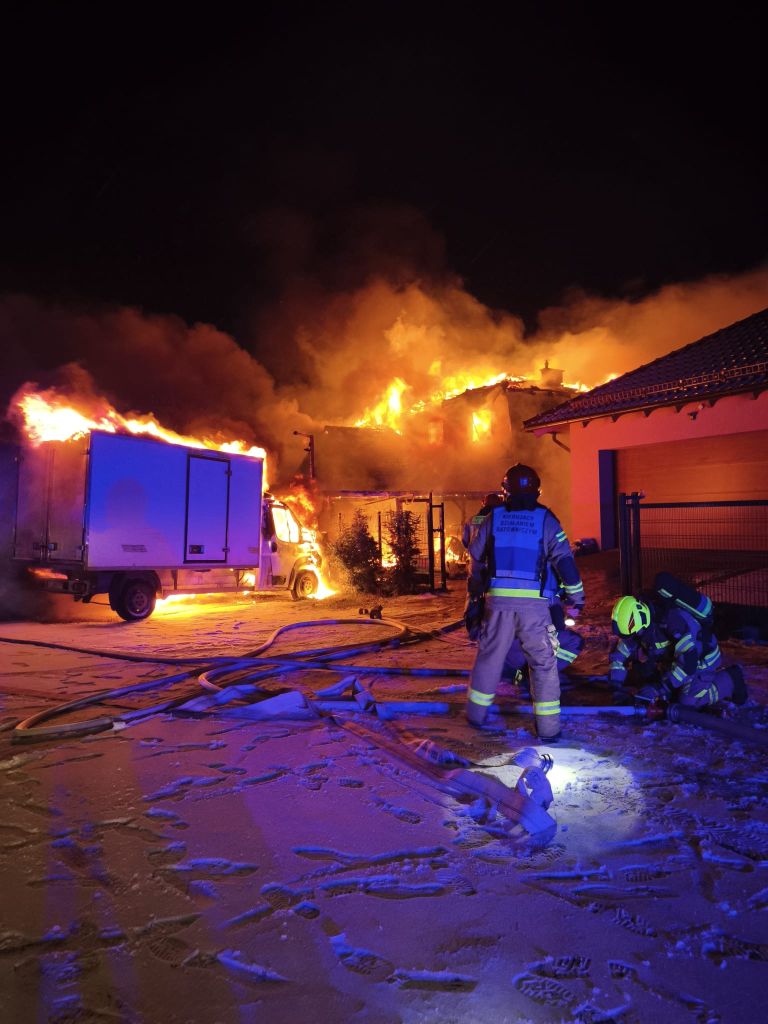3 stycznia 2026 roku około godziny 06:15 dyżurny Stanowiska Kierowania Komendanta Miejskiego PSP w Poznaniu otrzymał zgłoszenie o pożarze domu oraz samochodów w m.Krosinko przy ul. Nad Potokiem (gm. Mosina).
