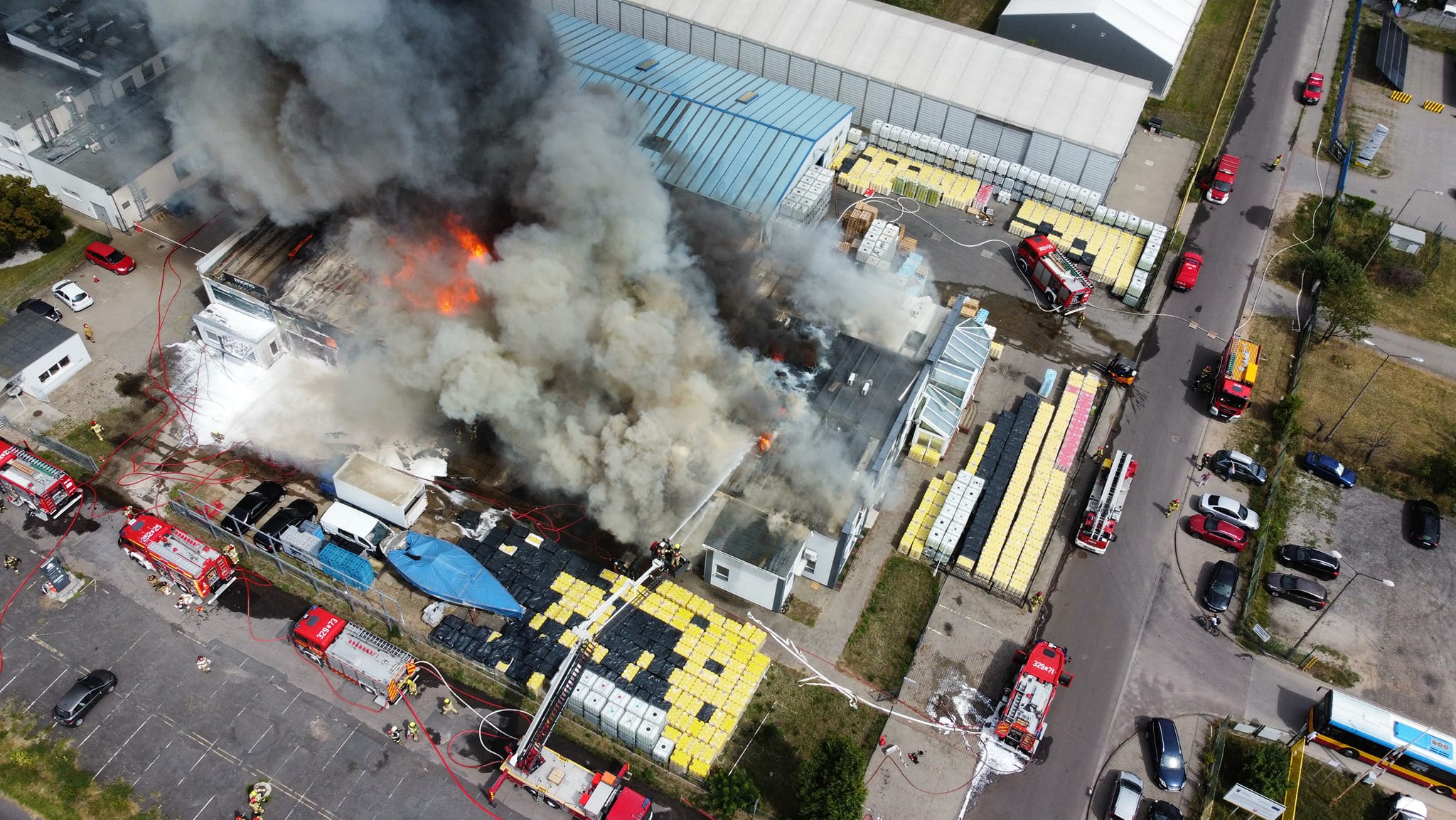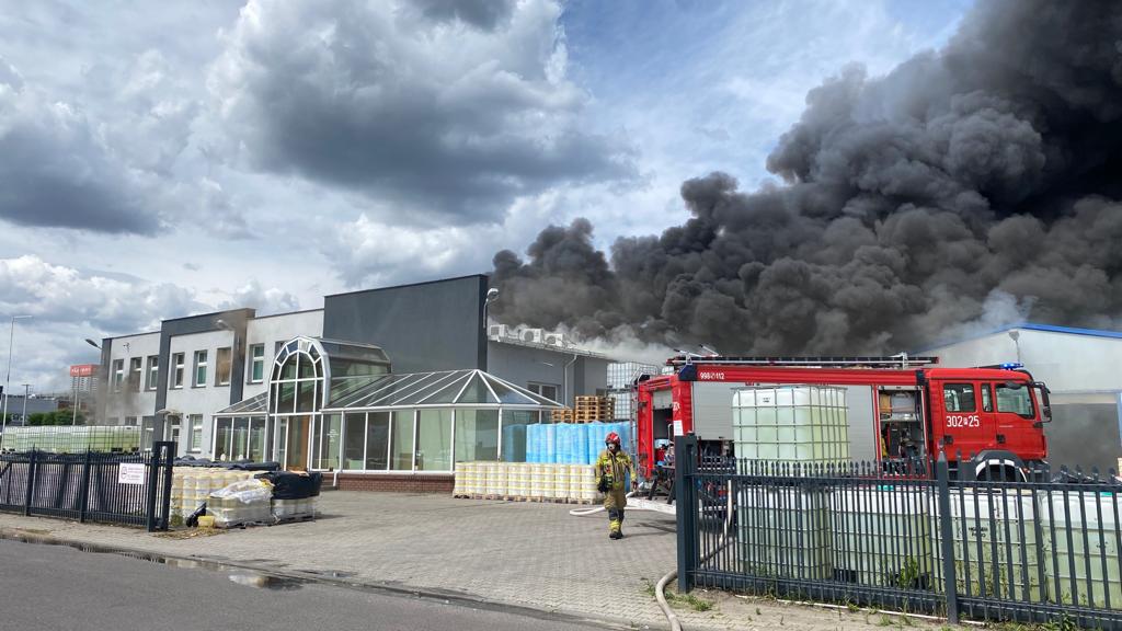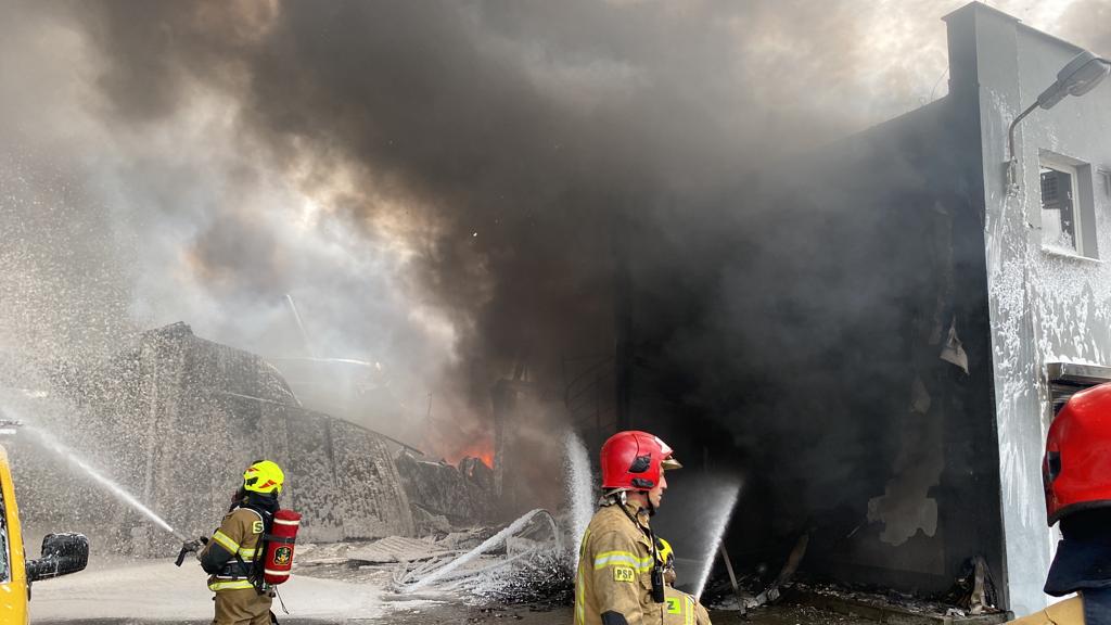 POŻAR HALI PRODUKCYJNO-MAGAZYNOWEJ W LUBONIU