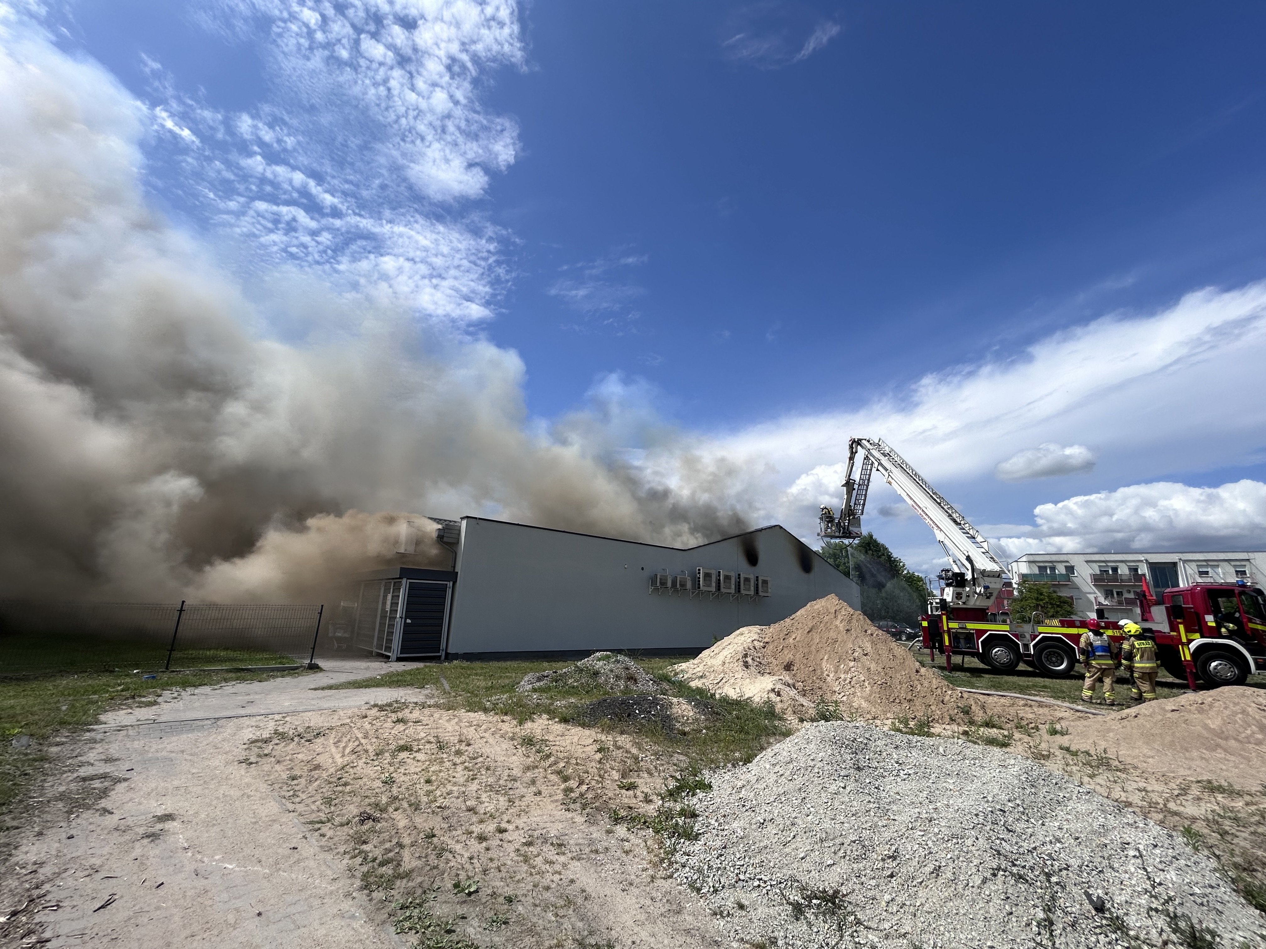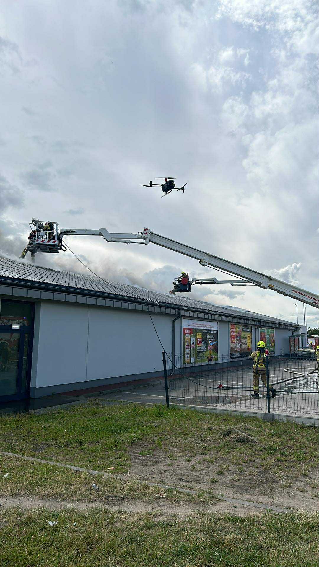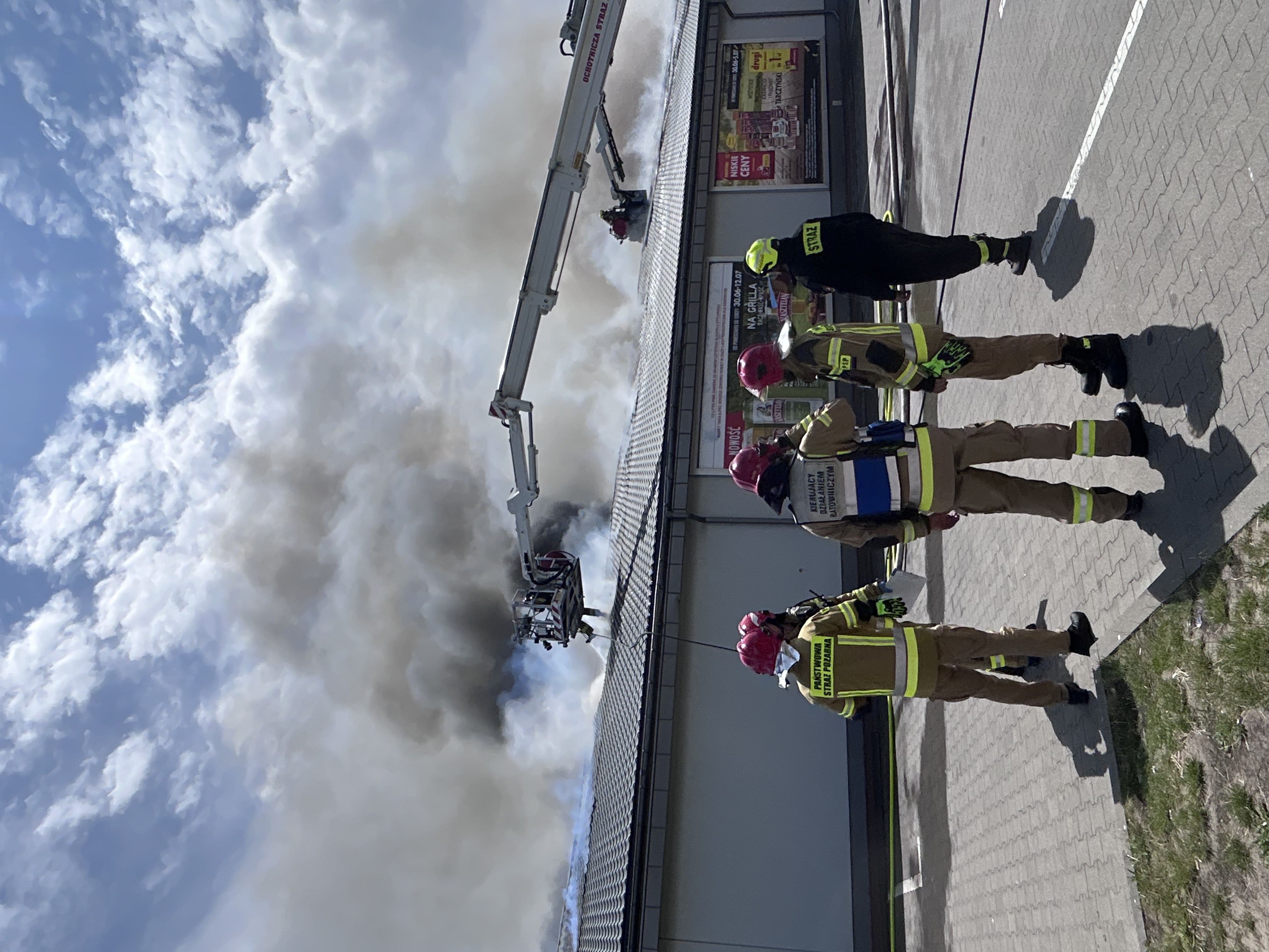 Pożar był widoczny z daleka za sprawą ciemnego i gęstego dymu. Po dojeździe nie było widać dużych płomieni, za to było bardzo duże zadymienie. Pożar rozwijał się na poddaszu oraz dachu budynku gdzie znajdowały się panele fotowoltaiczne. Z budynku wszyscy klienci wyszli przed przyjazdem JOP na miejsce oraz 6 pracowników, którzy ostrzegli o niebezpieczeństwie klientów i ich ewakuowali.