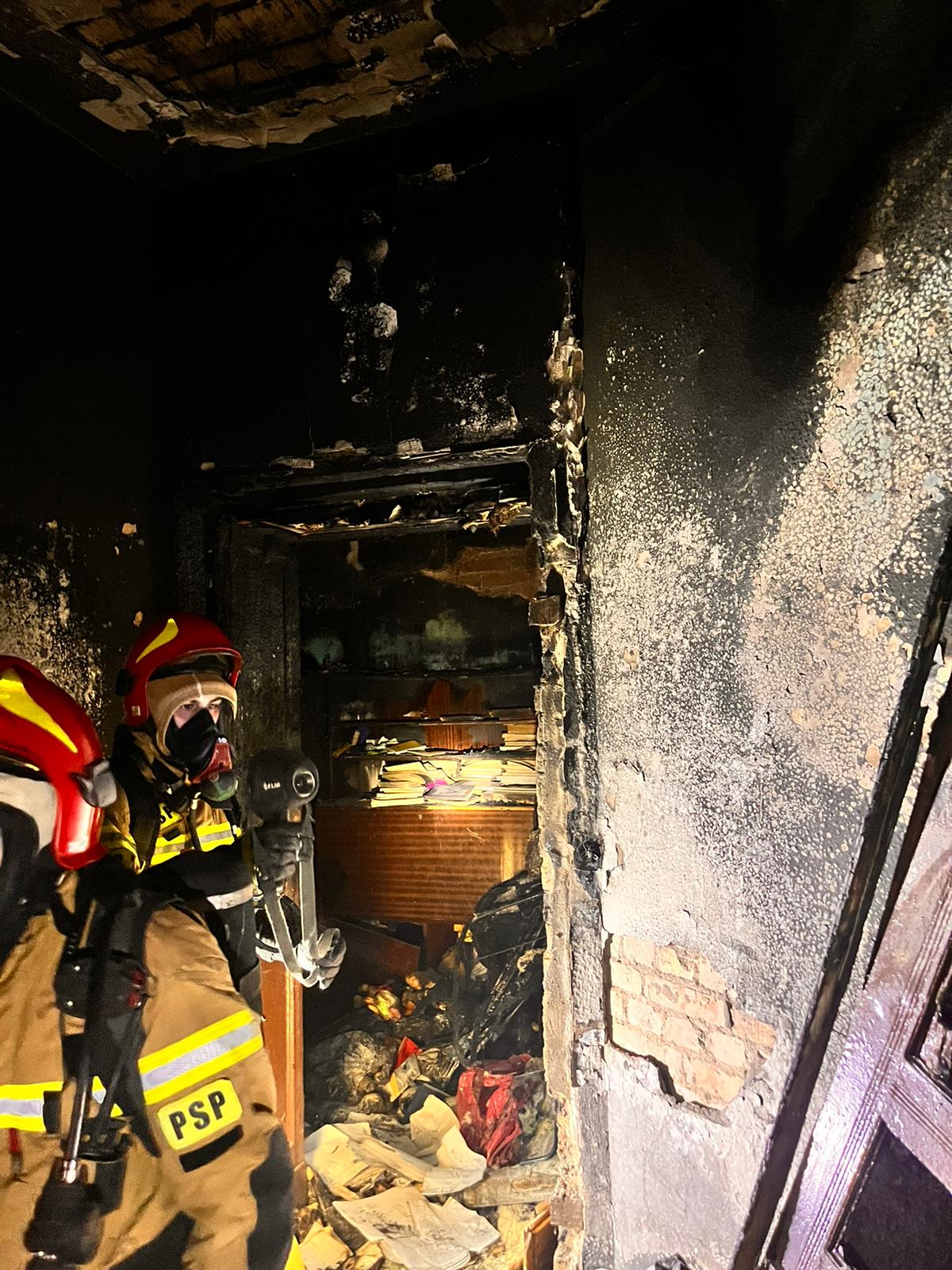 POŻAR MIESZKANIA NA 1 PIĘTRZE BUDYNKU WIELORODZINNEGO