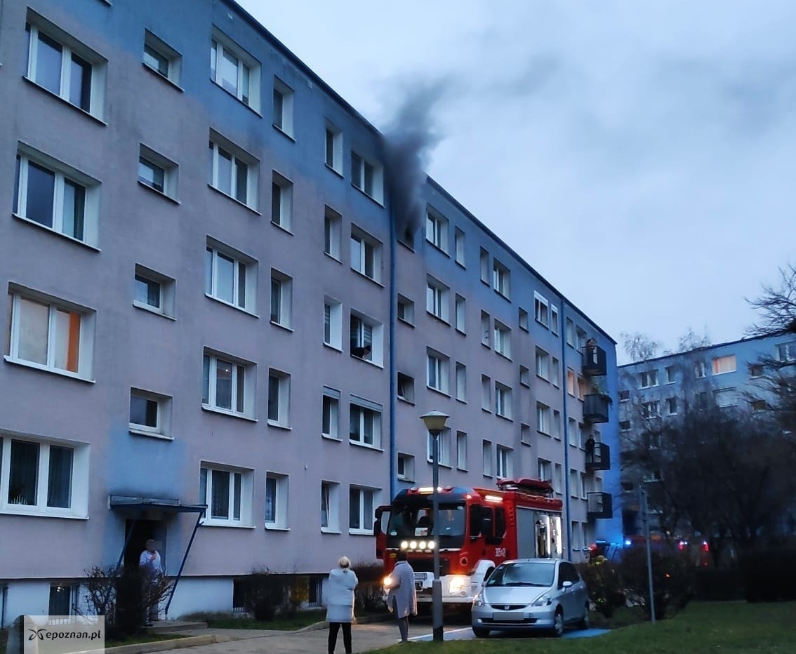 POŻAR NA KLATCE SCHODOWEJ W POZNANIU NA OS. KOSMONAUTÓW