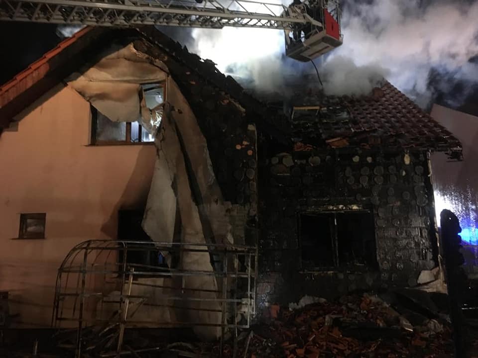Spaleniu uległ dach oraz poddasze budynku mieszkalnego oraz budynek gospodarczy wraz ze znajdującym się w środku samochodem.