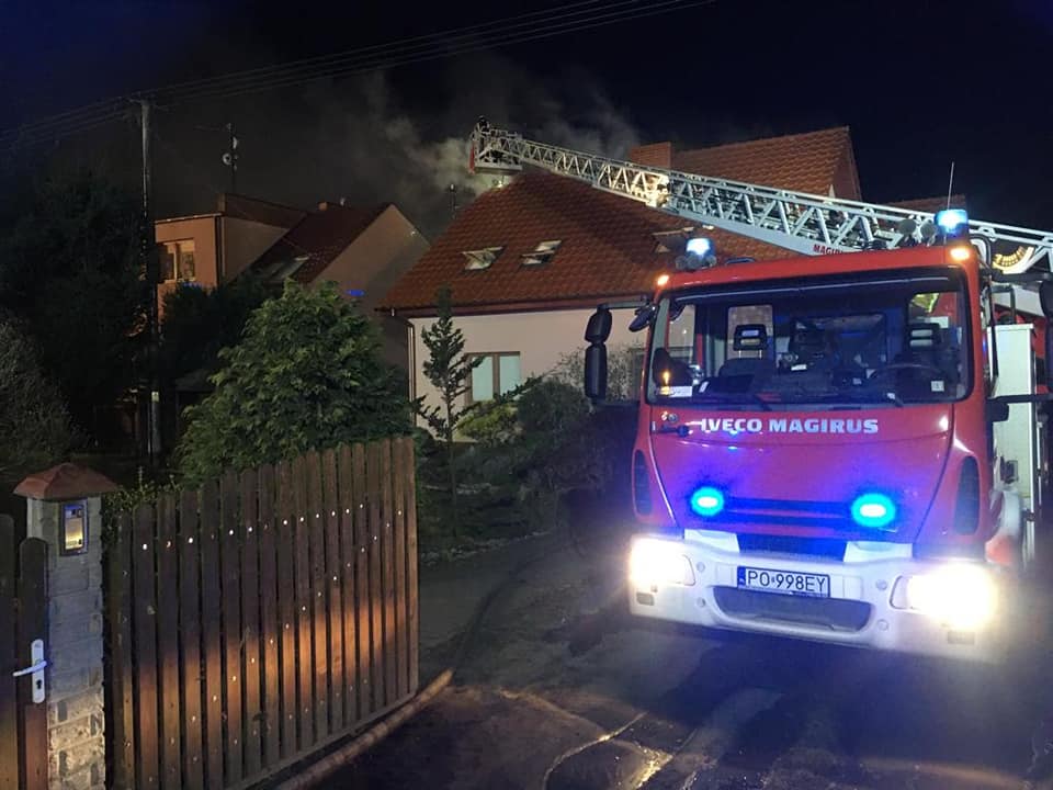 Dwa zastępy JRG 4 zostały zadysponowane do pożaru domu jednorodzinnego w podpoznańskim Skórzewie. Po dojeździe na miejsce zdarzenia Kierujący Działaniem Ratowniczym został poinformowany, że w budynku objętym pożarem najprawdopodobniej znajduje się jedna osoba. Wewnątrz budynku panowało silne zadymienie oraz wysoka temperatura. Po chwili otrzymano informację o opuszczeniu budynku przez wszystkich mieszkańców przed przybyciem straży pożarnej.