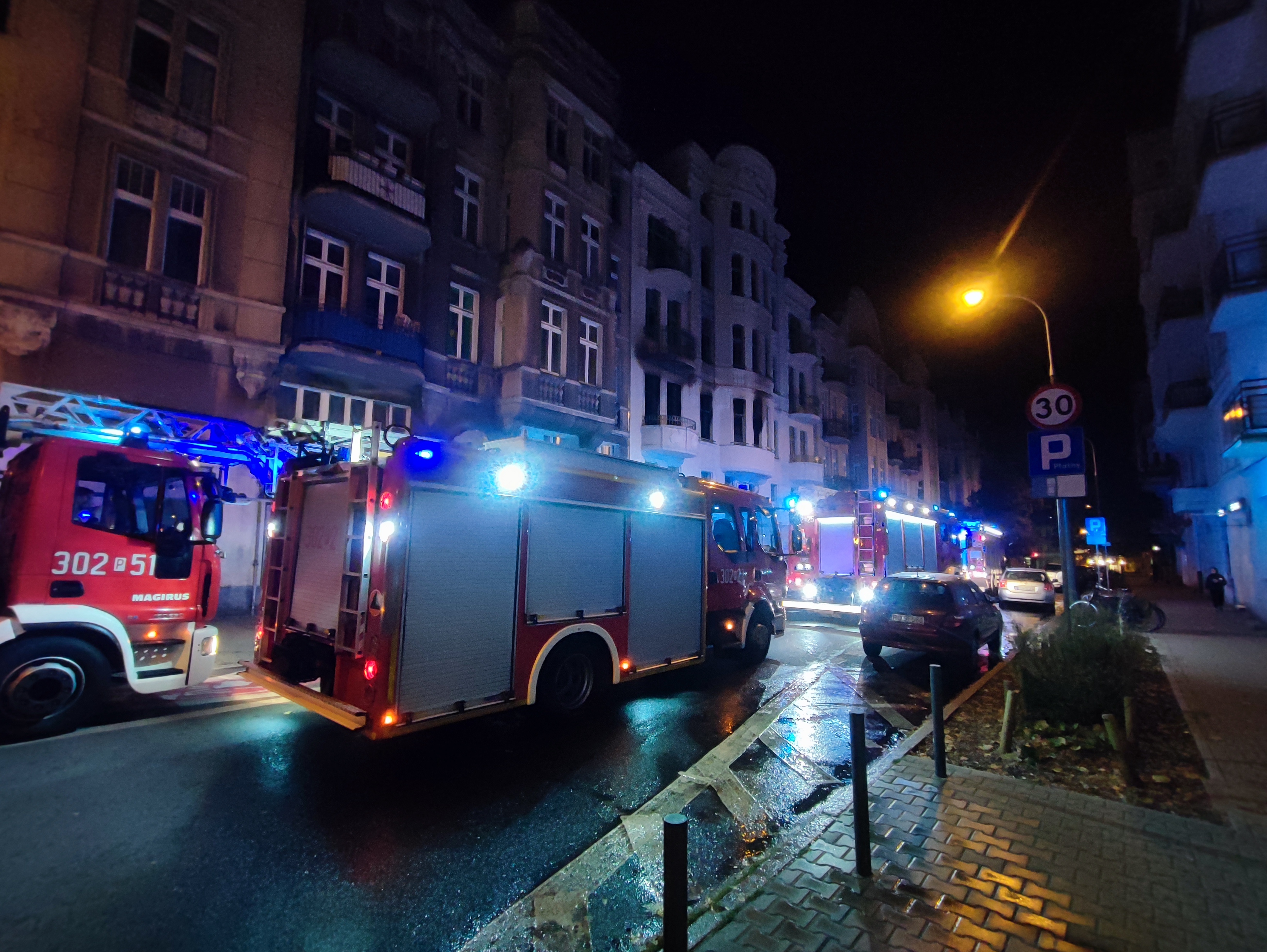 Po dojeździe na miejsce zdarzenia okazało się, że pożarem objęte jest drugie piętro kamienicy, a pożar przenosi się na dwie kolejne kondygnacje.