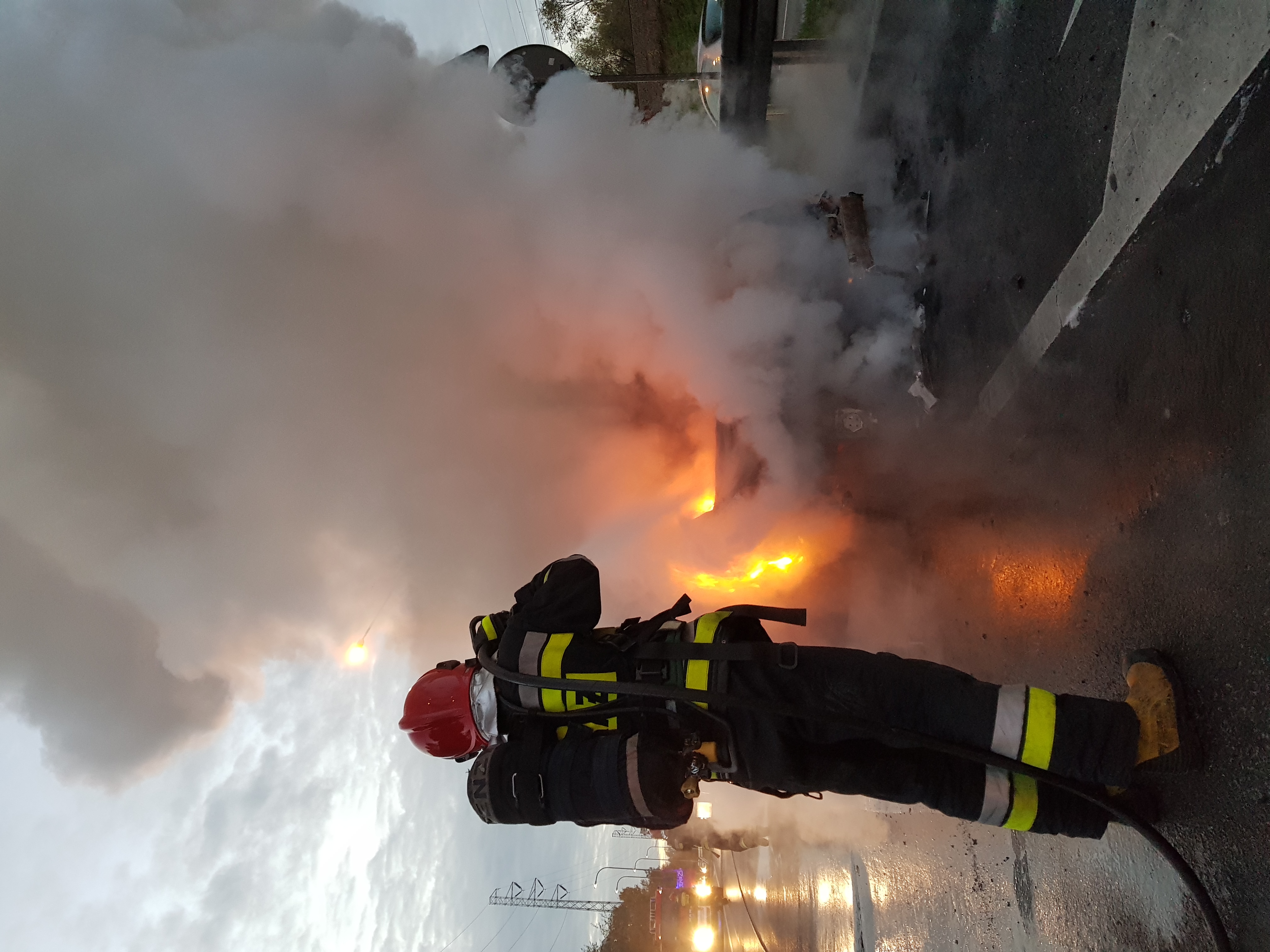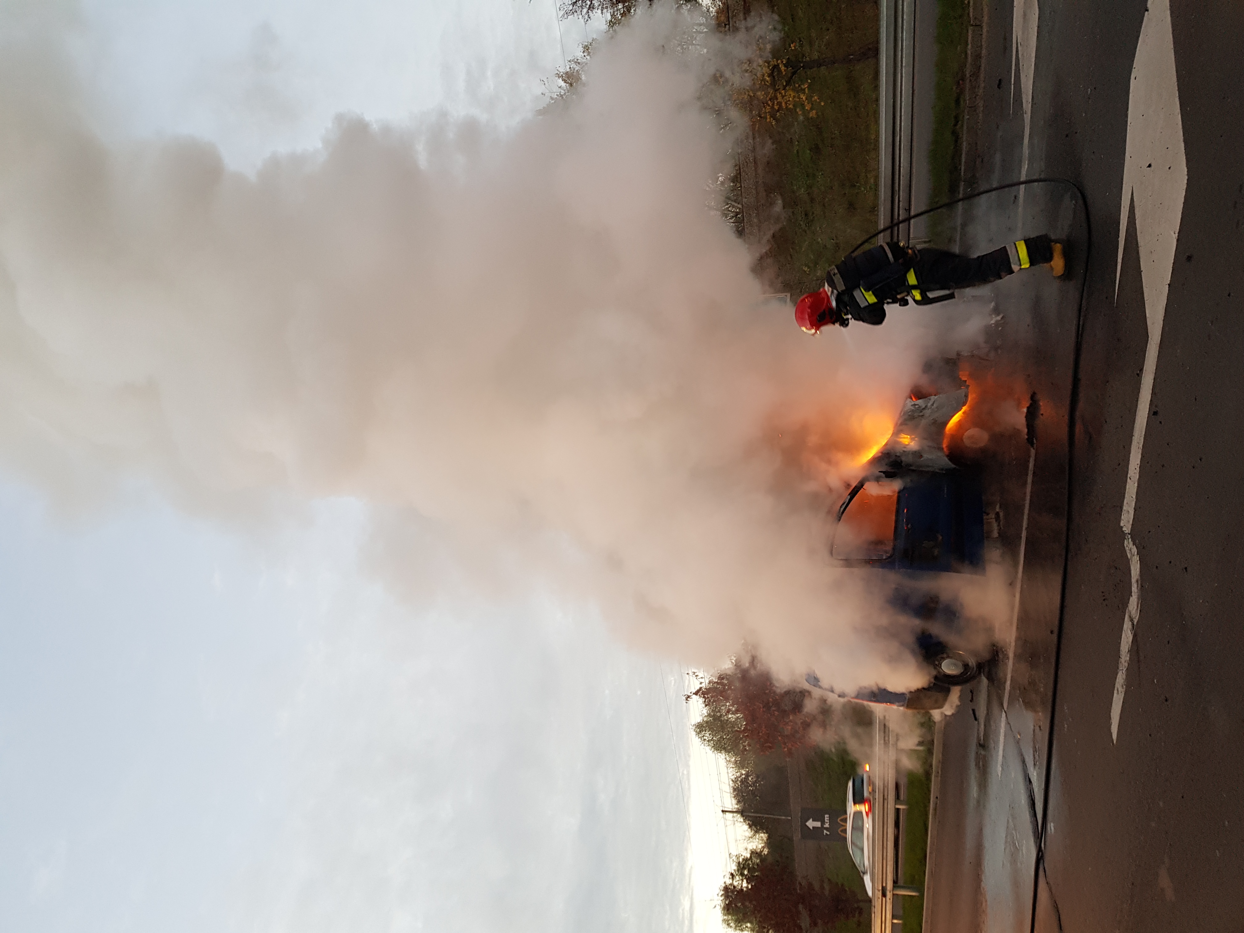 Po dojeździe na miejsce zdarzenia ratownicy zastali w pełni rozwinięty pożar samochodu. Podano prąd wody w natarciu. Po ugaszeniu pojazdu, sprawdzono go za pomocą kamery termowizyjnej w celu wyeliminowania ryzyka ponownego zapłonu.