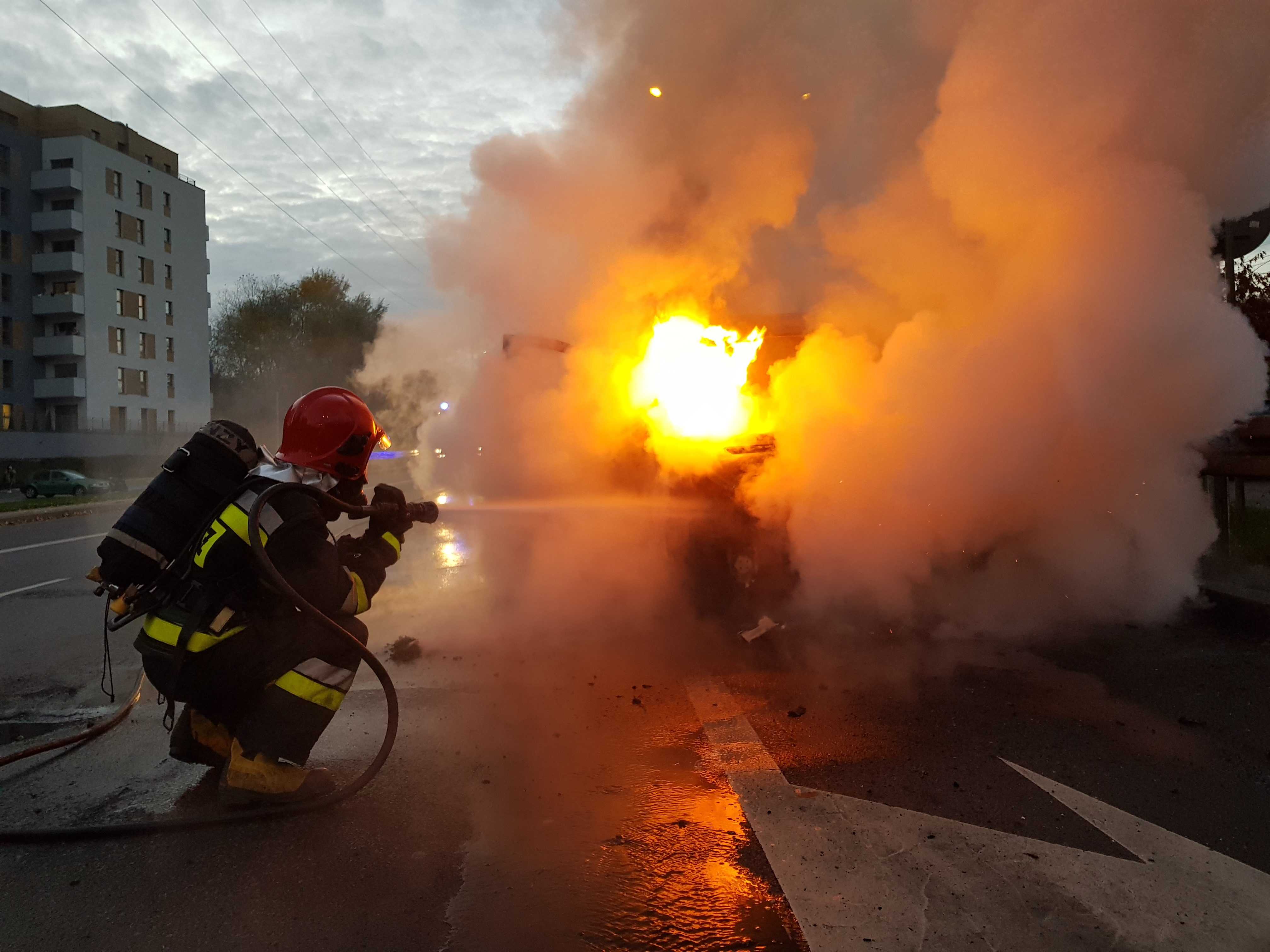Pożar samochodu na ul. św. Wawrzyńca