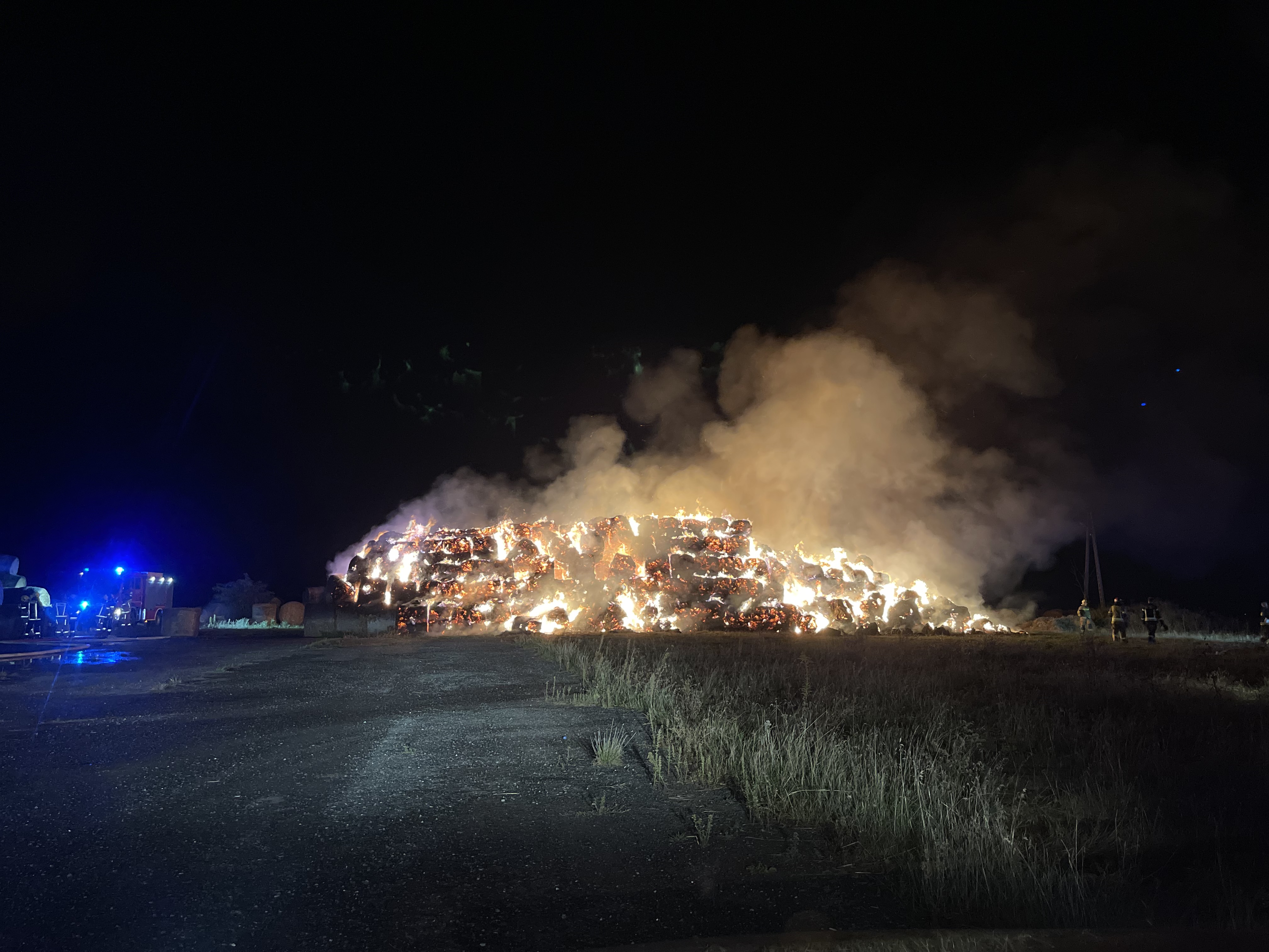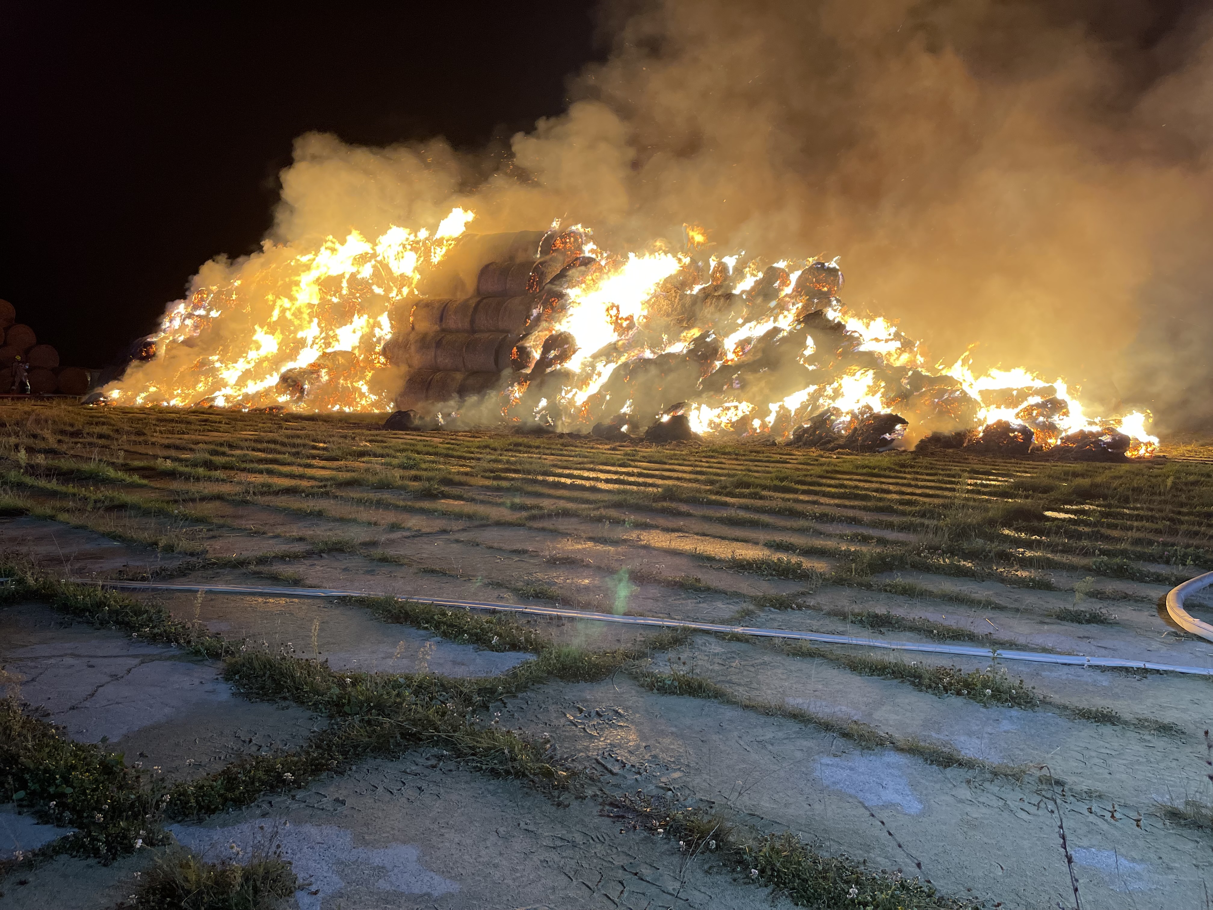 Po przybyciu JOP na miejsce zdarzenia zastano stóg z balotów słomy całkowicie objęty pożarem.