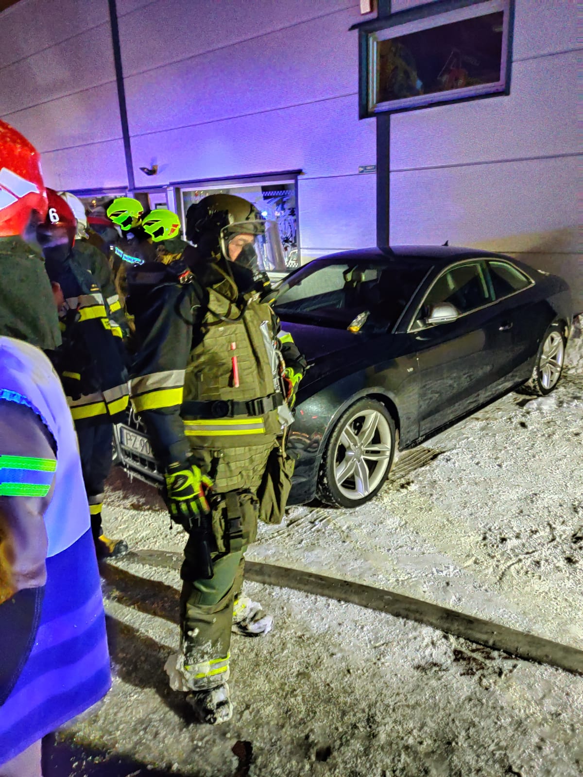 Teren akcji oświetlono, a z uwagi na bardzo niskie temperatury zorganizowano podmianę ratowników prowadzących działania od samego początku akcji.