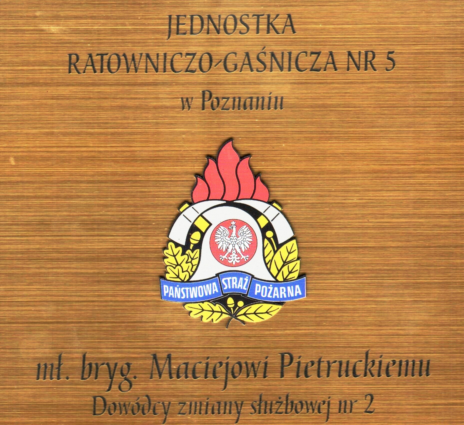 W piątek, 29 marca swoją ostatnią służbę w podziale bojowym naszej jednostki rozpoczął Dowódca zmiany nr 2 mł. bryg. Maciej Pietrucki. Było to związane z przeniesieniem służbowym do pełnienia służby w strukturach Wojskowej Ochrony Przeciwpożarowej, które nastąpiło 1 kwietnia br. i nie był to Prima Aprilis. Maciej pojawił się w naszej jednostce po ukończeniu poznańskiej Szkoły Aspirantów w 1999 roku. Przez 25 lat nienagannej służby rozwijał się zawodowo zajmując kolejne stanowiska służbowe oraz kończąc studia wyższe w Szkole Głównej Służby Pożarniczej, a także wchodząc w struktury naszej Specjalistycznej Grupy Ratownictwa Wysokościowego gdzie osiągnął poziom ratownika śmigłowcowego - operatora. Jest cenionym dowódcą i lubianym kolegą. Cieszy się uznaniem przełożonych oraz autorytetem wśród podwładnych. Jego nietuzinkowe poczucie humoru wielokrotnie rozładowywało napięcie związane z sytuacjami stresowymi w służbie. Niewątpliwie Wojskowa Ochrona Przeciwpożarowa zyskała bardzo dobrego pożarnika chociaż w naszej jednostce pozostawił po sobie uczucie żalu po odejściu.