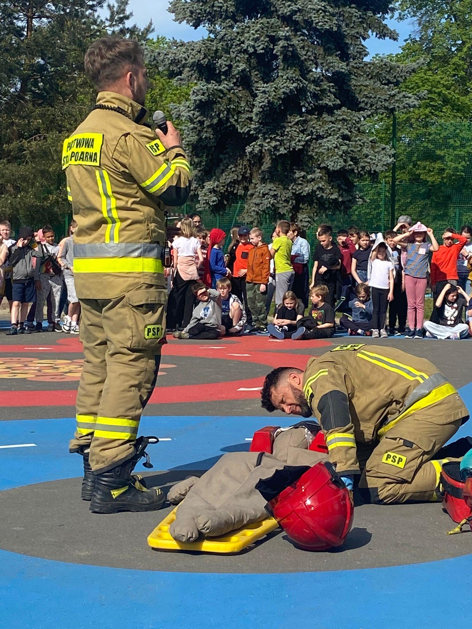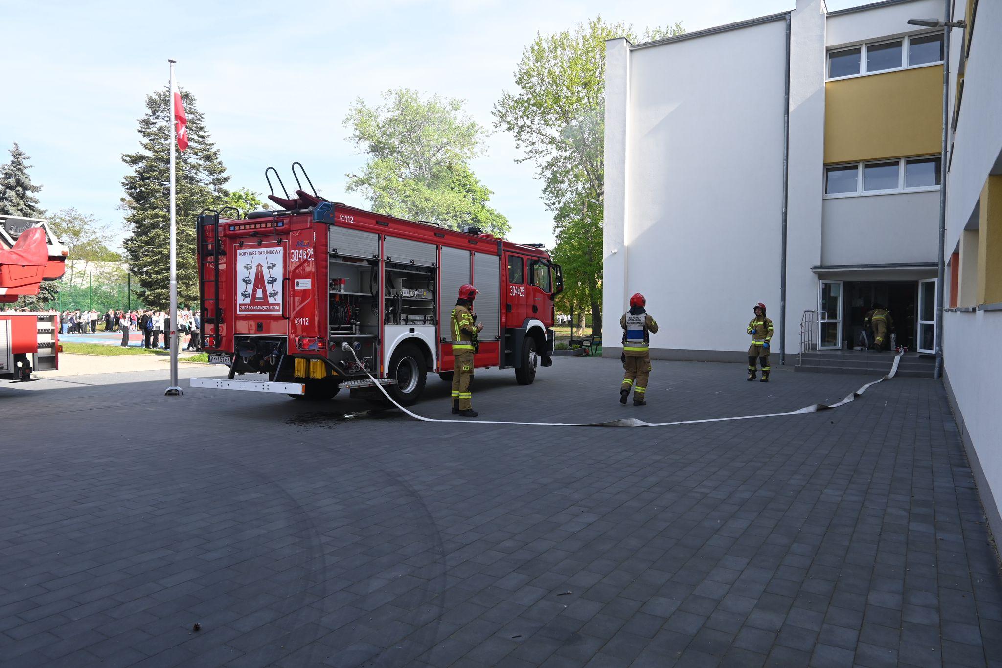 29 kwietnia 2024 roku w Zespole Szkolno Przedszkolnym nr 13 w Poznaniu przy ul. Hangarowej 14 w trosce o bezpieczeństwo uczniów przeprowadzony został próbny alarm przeciwpożarowy. Założenie zakładało wybuch gazu w piwnicy oraz pożar w sali biologicznej na I piętrze budynku. Celem tych ćwiczeń było przede wszystkim uświadomienie uczniom jak należy zachować się w sytuacji zagrożenia, a także zapoznanie z drogami ewakuacji i opanowanie paniki. Dodatkowo strażacy omówili zasady udzielania pierwszej pomocy przedmedycznej oraz zapoznali uczestników z charakterystyką Specjalistycznej Grupy Poszukiwawczo-Ratowniczej Poznań. Cała akcja w wyznaczonym czasie przebiegła bardzo sprawnie i zgodnie z zasadami postępowania w czasie niebezpieczeństw. Ratownicy w sposób profesjonalny i szybki ewakuowali osobę poszkodowaną przy pomocy drabiny mechanicznej oraz ugasili pożar w sali biologicznej. Podczas założenia pracował również strażacki pies ratownik, który wraz z przewodnikiem przeszukał piwnicę po wybuchu gazu, gdzie znalazł żywą osobę.