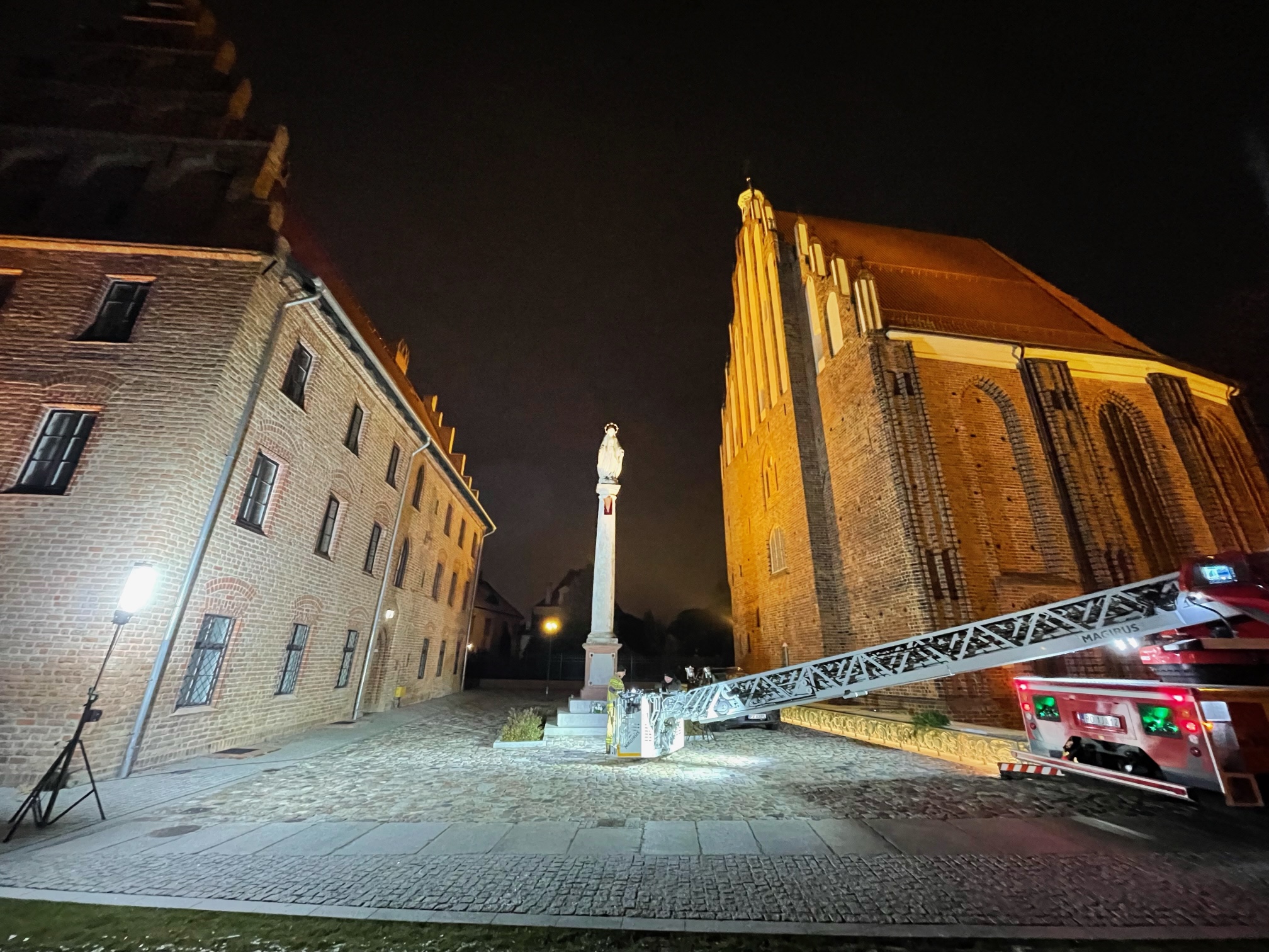 Tradycyjnie już jak co roku, funkcjonariusze systemu zmianowego JRG-1, przy użyciu drabiny złożyli u stóp figury Niepokalanej, kilkanaście metrów nad ziemią - piękny bukiet kwiatów.