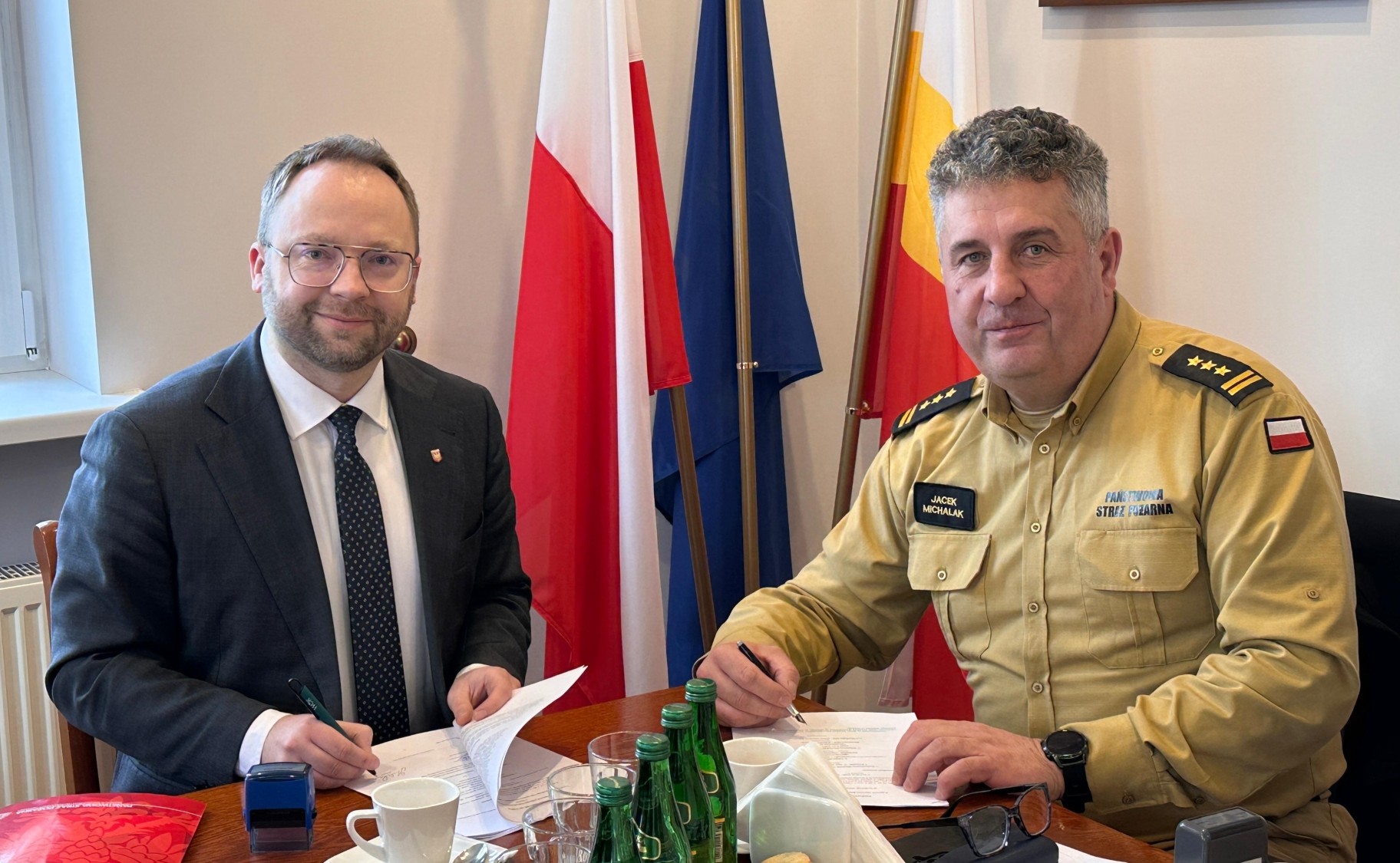 Uroczyste spotkanie z tej okazji odbyło się w Urzędzie Miasta Mosina, gdzie kolejno podpisy złożyli: Dominik Michalak – Burmistrz Gminy Mosina oraz przedstawiciele OSP Pecna: Robert Cieleński - Wiceprezes OSP oraz Rafał Kubinka - Skarbnik OSP.