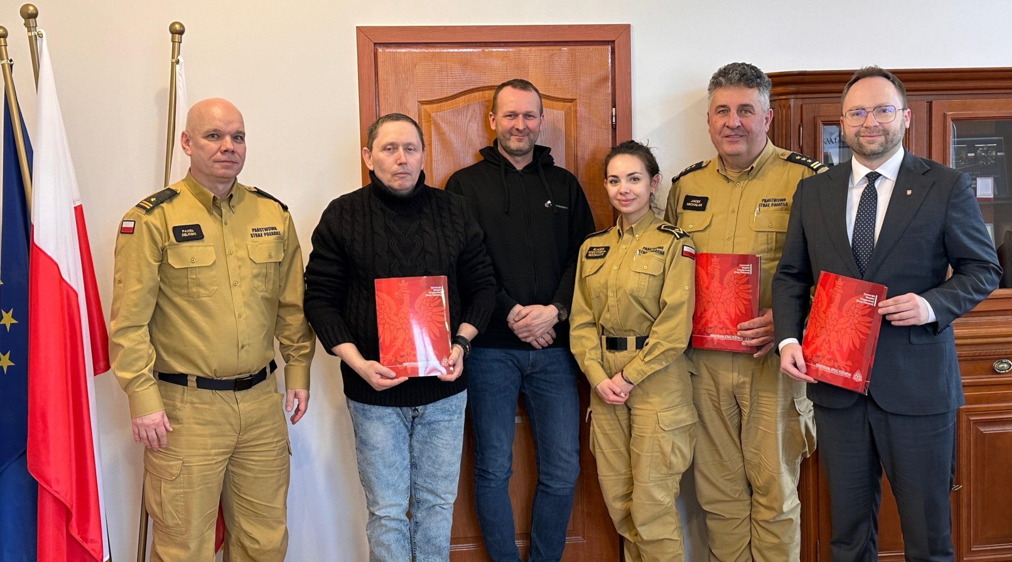 W spotkaniu uczestniczyli również: mł. bryg. Paweł Zieliński - dowódca Jednostki Ratowniczo–Gaśniczej Nr 9 w Mosinie oraz przedstawiciele Wydziału Operacyjno–Szkoleniowego KM PSP w Poznaniu – mł. bryg. Adam Szyda oraz mł. asp. Klaudia Kozłowska-Wdowczyk.