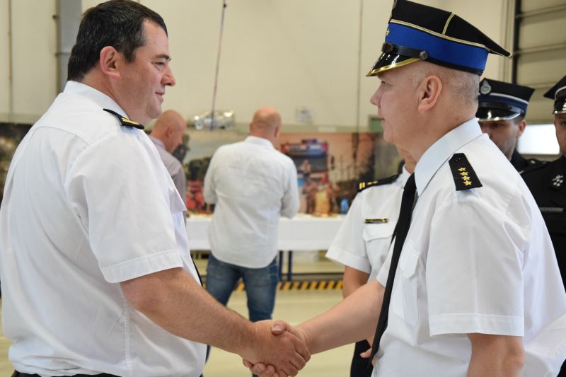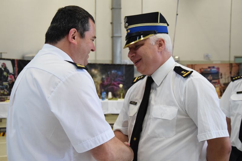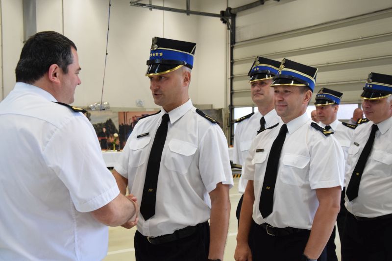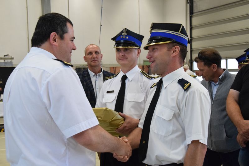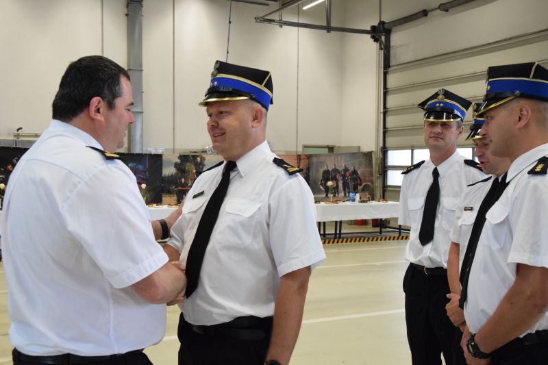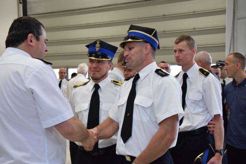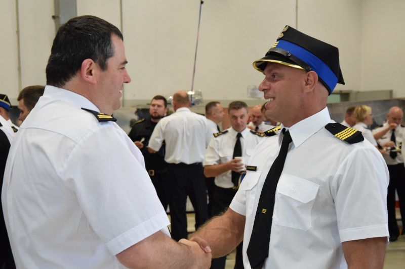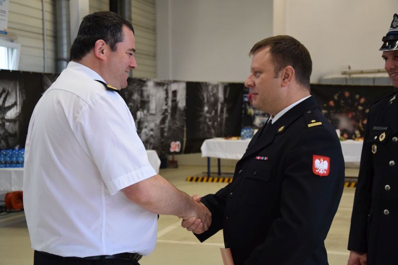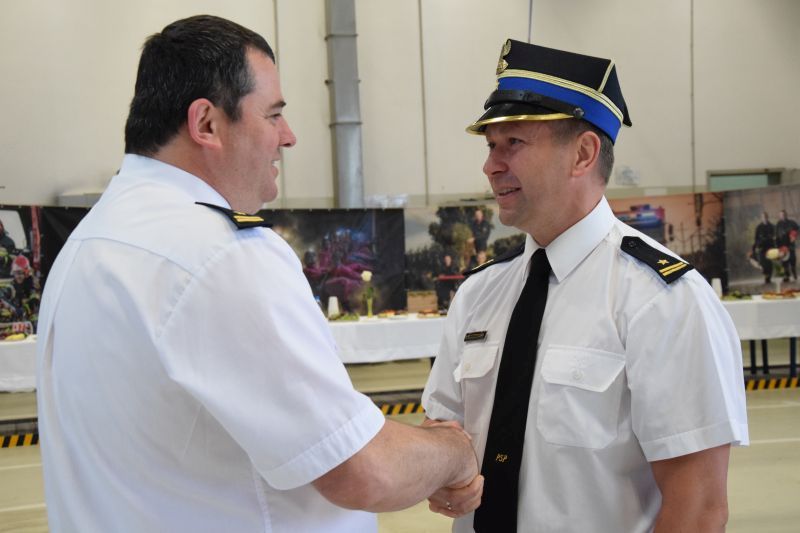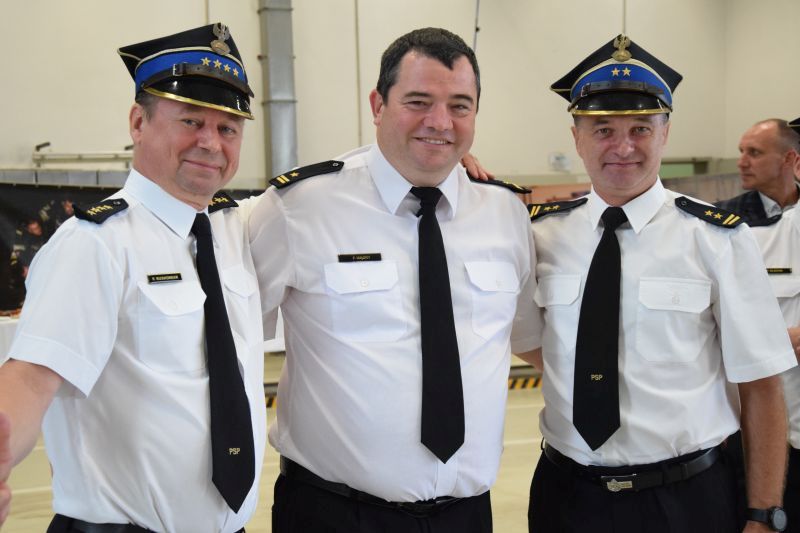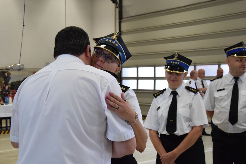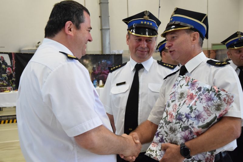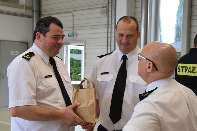 Podziękowanie Piotrowi za długoletnią służbę złożyli Komendant Miejski PSP w Poznaniu st. bryg. Jacek Michalak, Dowódca JRG 1 bryg. Mariusz Kowalski, kadra kierownicza, licznie przybyli funkcjonariusze Komendy Miejskiej i Wojewódzkiej PSP w Poznaniu, druhowie OSP, emeryci oraz koledzy.
