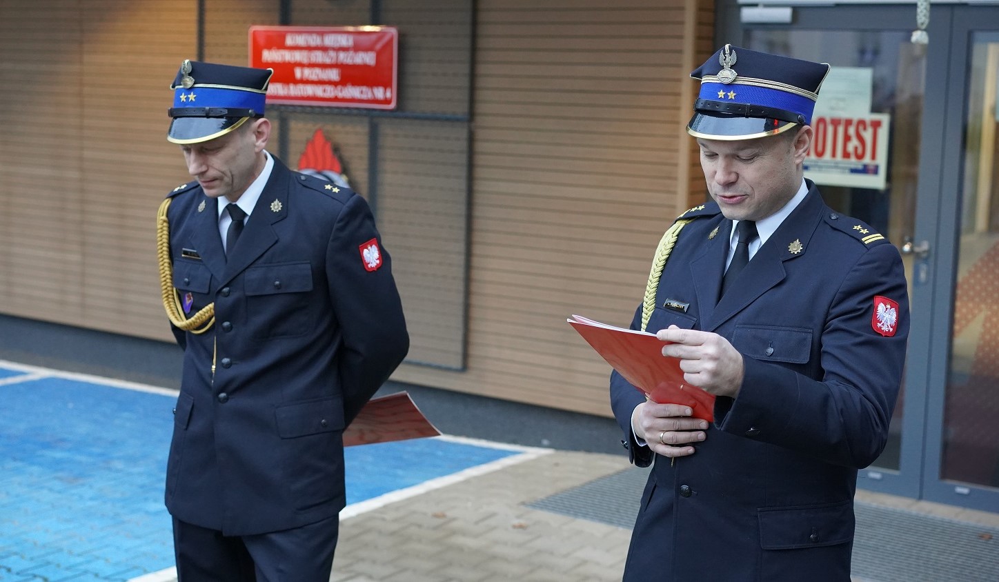 W pierwszej kolejności głos zabrał Dowódca Jednostki Ratowniczo-Gaśniczej, który odczytał decyzję Komendanta Głównego Państwowej Straży Pożarnej o zwolnieniu ze służby w PSP mł. kpt. Radosława Steca. Zastępca Komendanta Miejskiego PSP w Poznaniu st. bryg. Damian Jankowiak przypomniał przebieg kariery zawodowej odchodzącego na zaopatrzenie emerytalne oficera. Następnie Radek przytoczył kilka ciekawych wspomnień ze swoich 25 lat służby. Zgodnie z tradycją JRG nr 4 przyszedł czas na przybicie tabliczki pamiątkowej do podpory oraz zawieszenie pamiątkowego tablo na ścianie emerytów. Uroczystość była momentem jednoczącym społeczność strażacką i pokazującym, że służba strażaka to nie tylko obowiązek, lecz również silne więzi i wspólnota. Nowemu emerytowi życzymy wszelkiej pomyślności, sukcesów w życiu osobistym oraz odwagi w spełnianiu marzeń.
