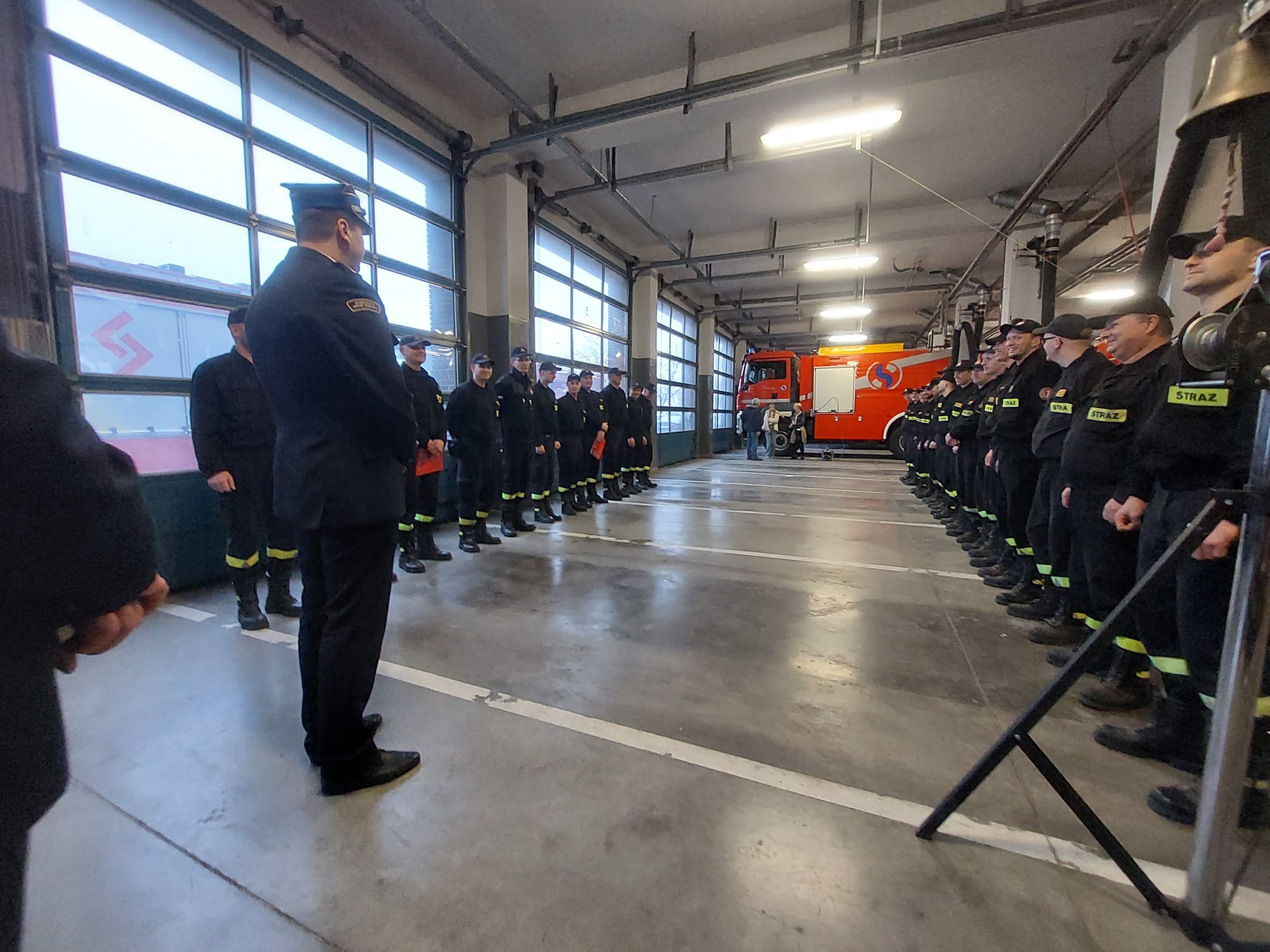 Uroczysta zbiórka rozpoczęła się od odczytania listu okolicznościowego Komendanta Miejskiego PSP w Poznaniu, w którym Komendant przybliżył sylwetki odchodzących ze służby strażaków, a także podziękował za zaangażowanie, nienaganną służbę i poświęcenie w codziennej realizacji obowiązków służbowych.