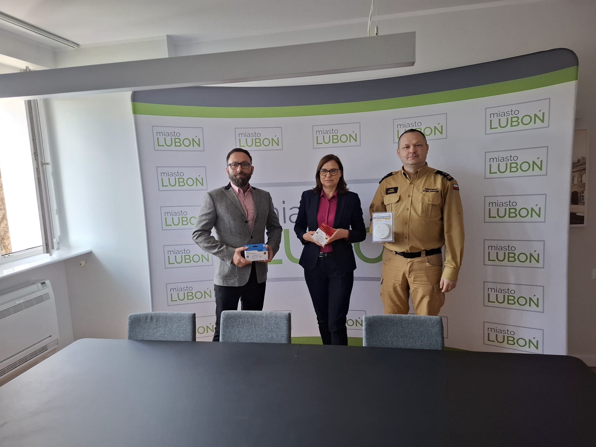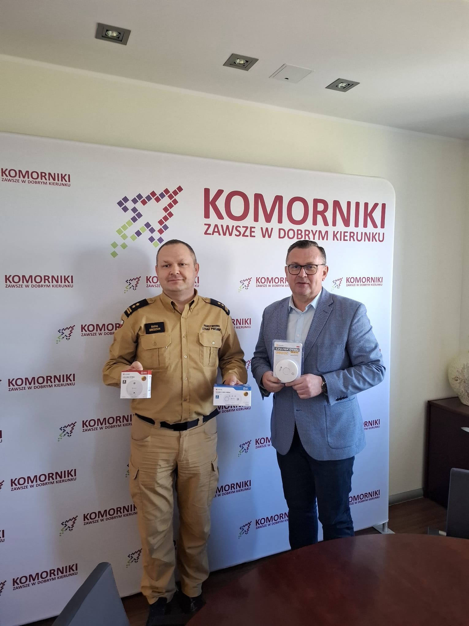 Dowódca Jednostki Ratowniczo-Gaśniczej nr 2 w Poznaniu Komendy Miejskiej PSP w Poznaniu, podczas spotkań z Panią Burmistrz miasta Luboń oraz Wójtem Gminy Komorniki, przekazał autonomiczne czujki tlenku węgla oraz dymu, zakupione w ramach projektu „Program Ochrony Ludności i Obrony Cywilnej”. Urządzenia te trafią do mieszkańców o niższych dochodach, za pośrednictwem samorządów.