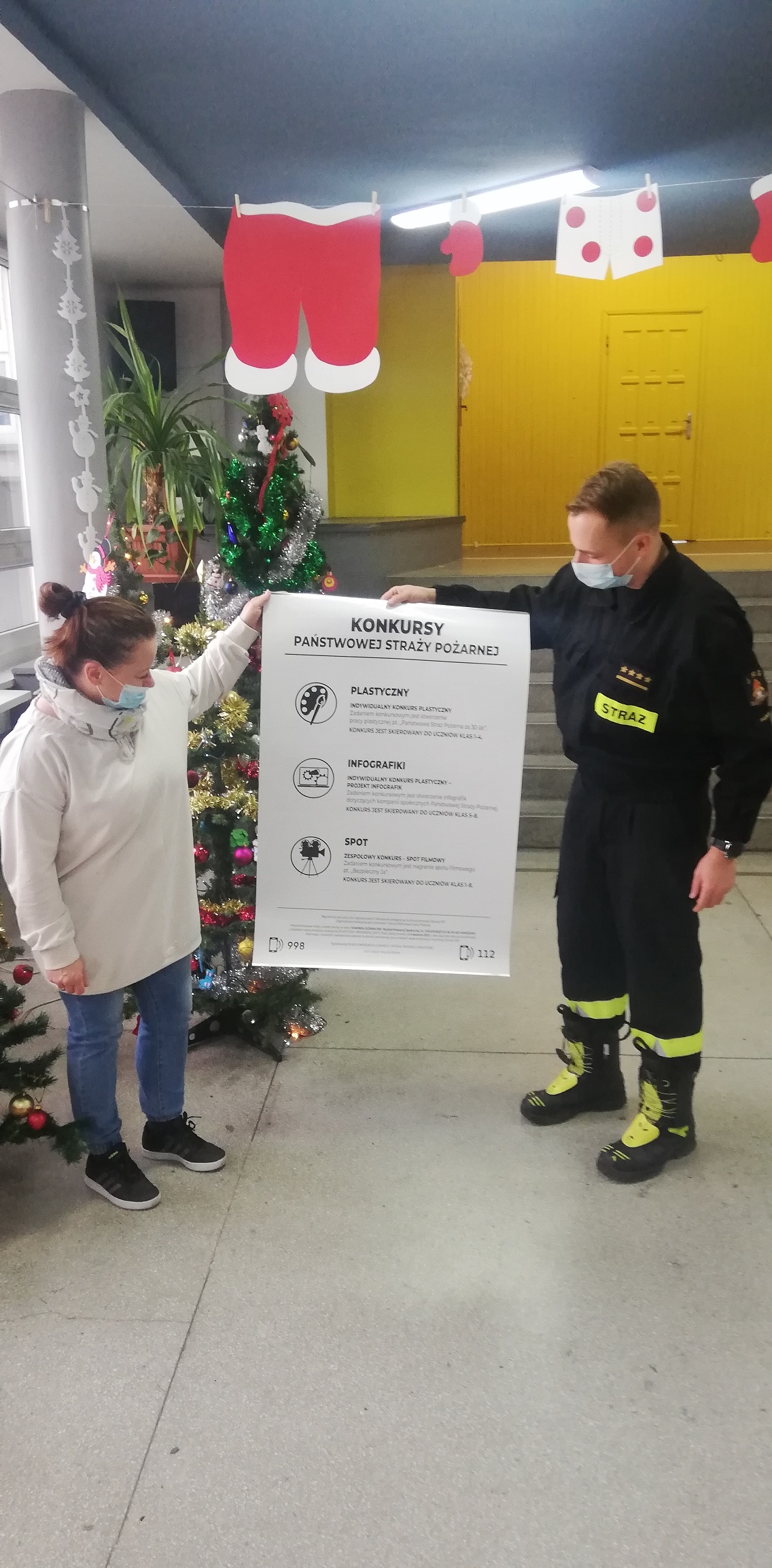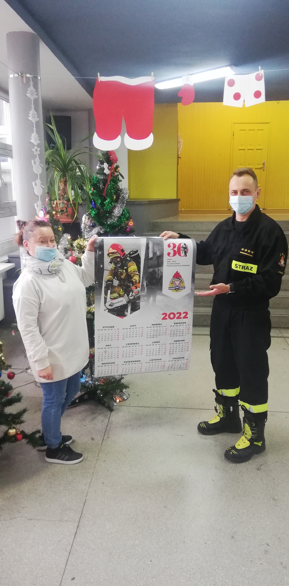 W dniu 17 grudnia 2021 r. zostały odwiedzone Szkoły Podstawowe w celu przekazania kalendarzy Państwowej Straży Pożarnej na rok 2022. Strażacy podczas przekazywania kalendarzy zachęcali uczniów klas 1 - 4 oraz 5 - 8 do udziału w tradycyjnych konkursach i pokazania swoich talentów.