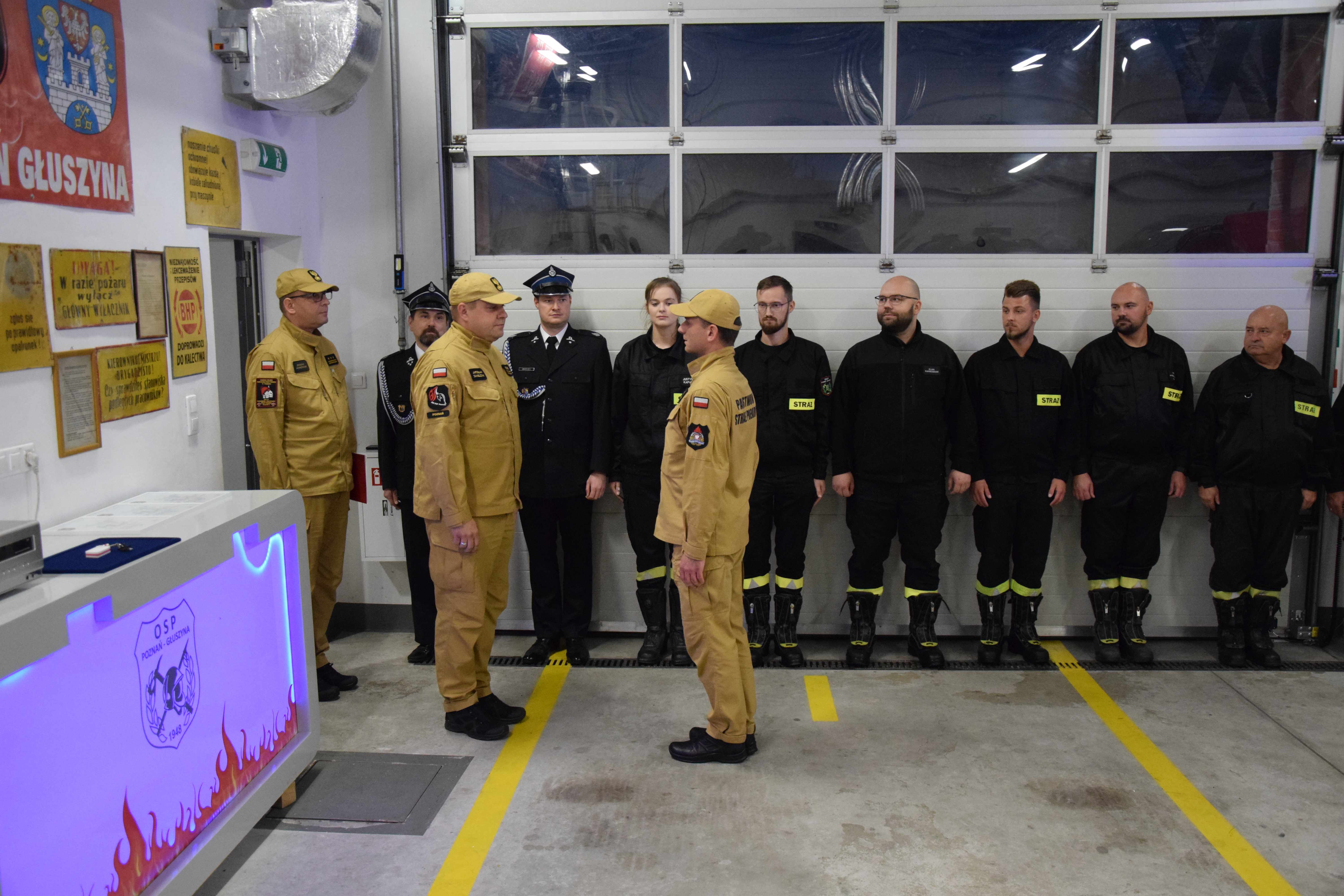 Uroczystość rozpoczęła się złożeniem meldunku Zastępcy Wielkopolskiego Komendanta Wojewódzkiego Państwowej Straży Pożarnej st. bryg. Jarosławowi Zamelczykowi o gotowości pododdziałów do uroczystej zbiórki. W trakcie zbiórki przekazano Ochotniczej Straży Pożarnej w Głuszynie łódź ratowniczą. Przekazany sprzęt wzmocni gotowość operacyjną jednostki, która usytuowana jest w pobliżu rzeki Warty.