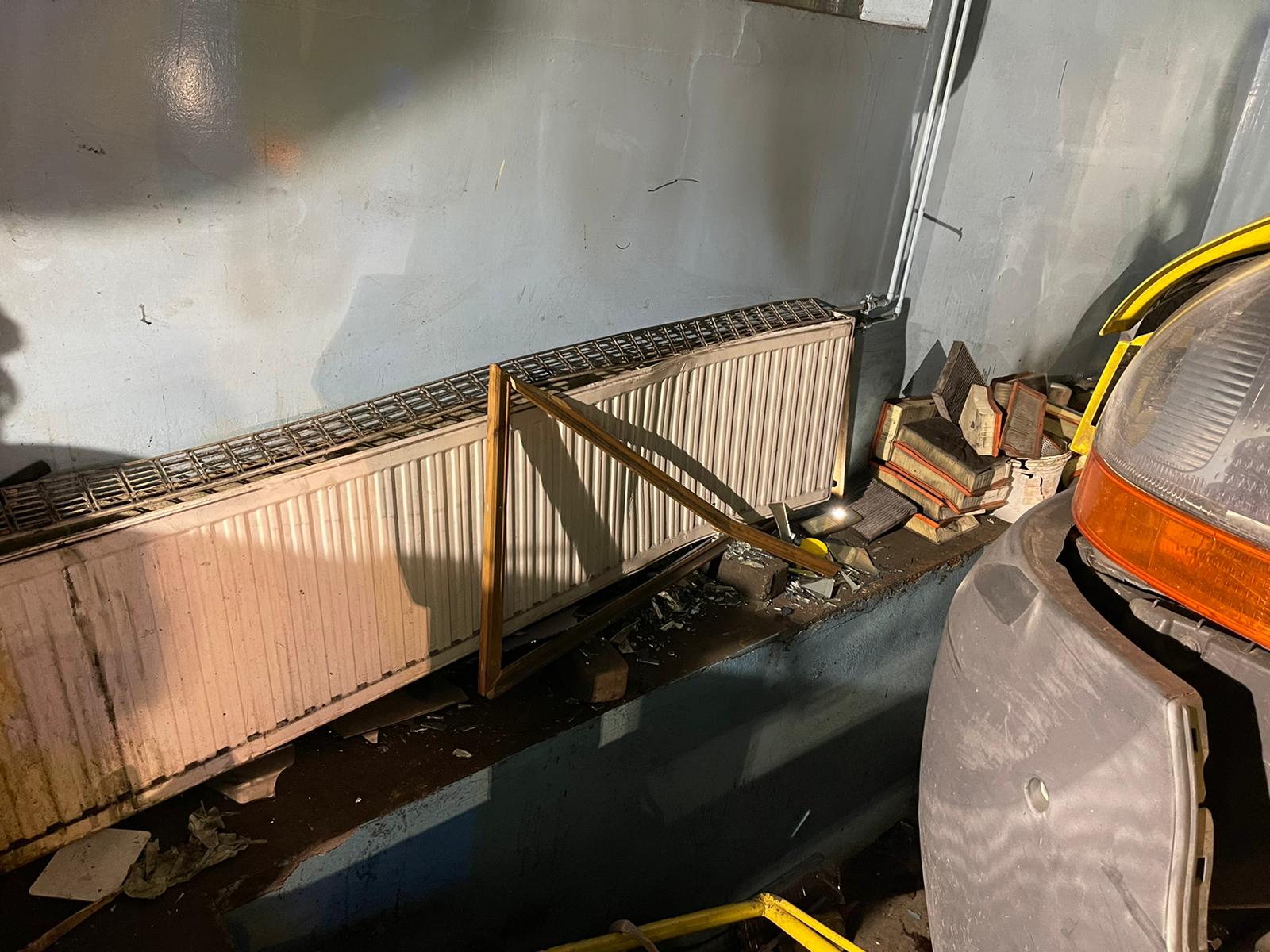 Po przybyciu Jednostek Ochrony Przeciwpożarowej na miejscu znajdował się już Zespół Ratownictwa Medycznego. Osoba poszkodowana była nieprzytomna, przygnieciona przez pojazd do jednej ze ścian budynku.
