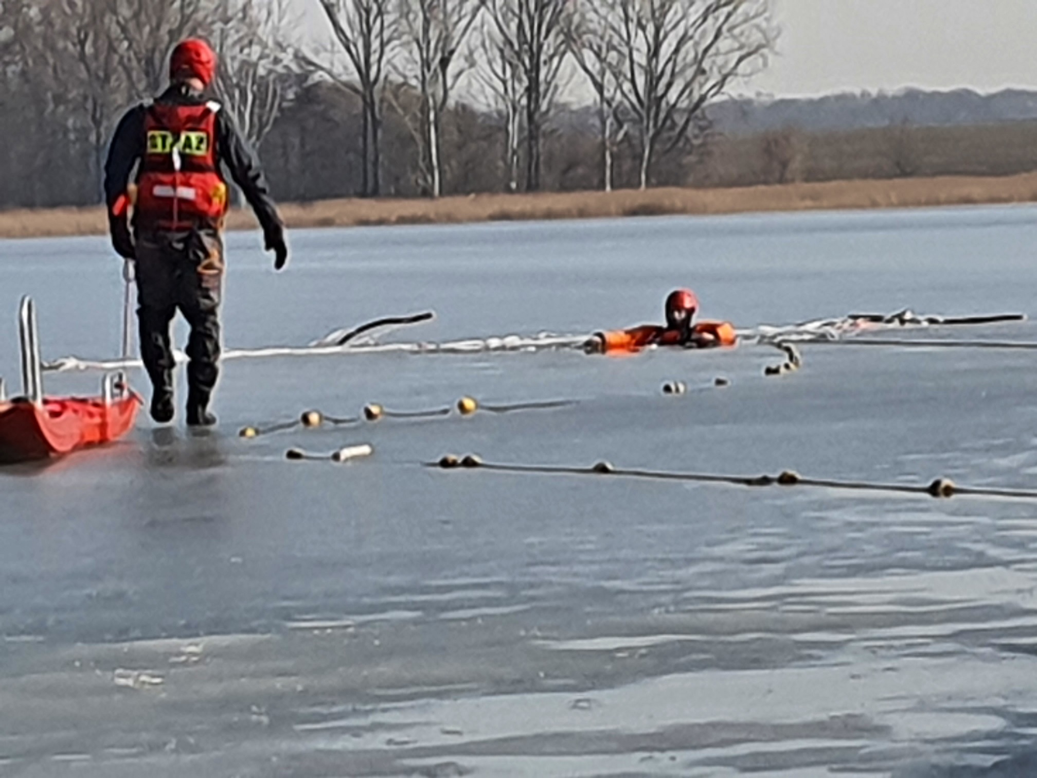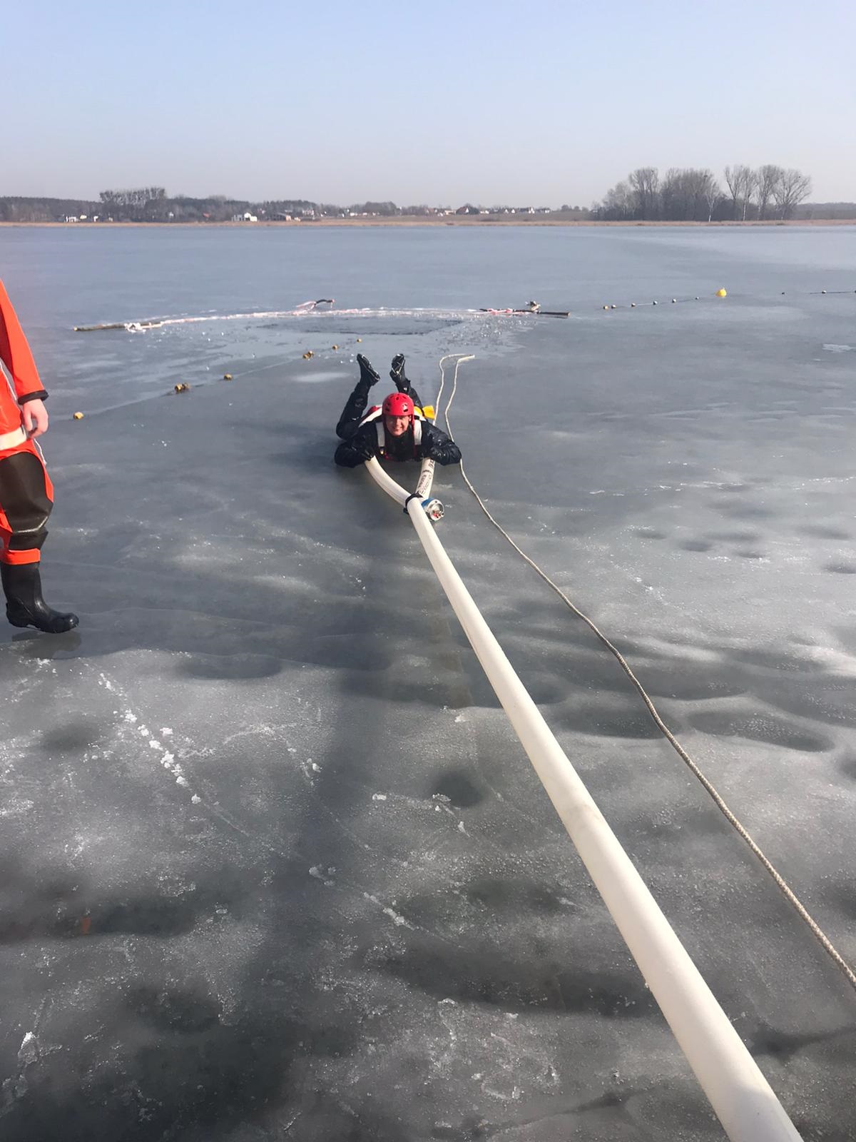 W zajęciach wykorzystano również techniki pomocy poszkodowanym przy użyciu sprzętu typowo pożarniczego takiego jak węże tłoczne i zestaw pneumatyczny. Ratownicy przećwiczyli również samoratowanie – wydostanie się z przerębla za pomocą kolców lodowych.