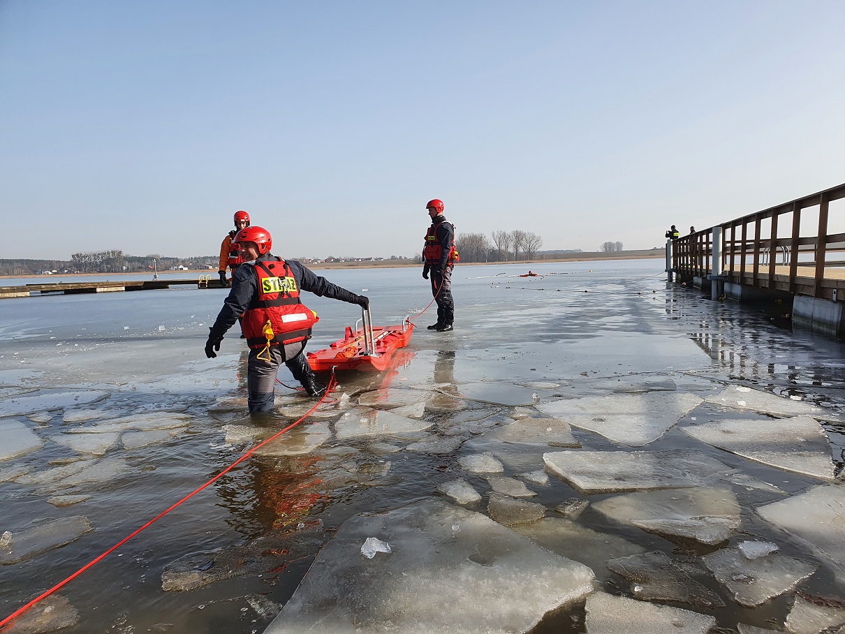 W dniach 22 – 25.02.2021 r. tematem doskonalenia zawodowego w Jednostce Ratowniczo – Gaśniczej nr 2 było „ratownictwo lodowe”. Korzystając ze sprzyjających warunków atmosferycznych zajęcia były prowadzone przez poszczególne zmiany służbowe na dwóch akwenach: Jezioro Niepruszewskie oraz Jezioro Rusałka. Podczas zajęć ratownicy przećwiczyli kilka wariantów podejmowania osoby poszkodowanej pod którą załamał się lód. Strażacy realizowali założenia poprzez wykorzystanie sprzętu będącego na wyposażeniu JRG 2 w tym sań lodowych, suchych skafandrów, kamizelek ratowniczych, lin ratowniczych, rzutki ratowniczej.