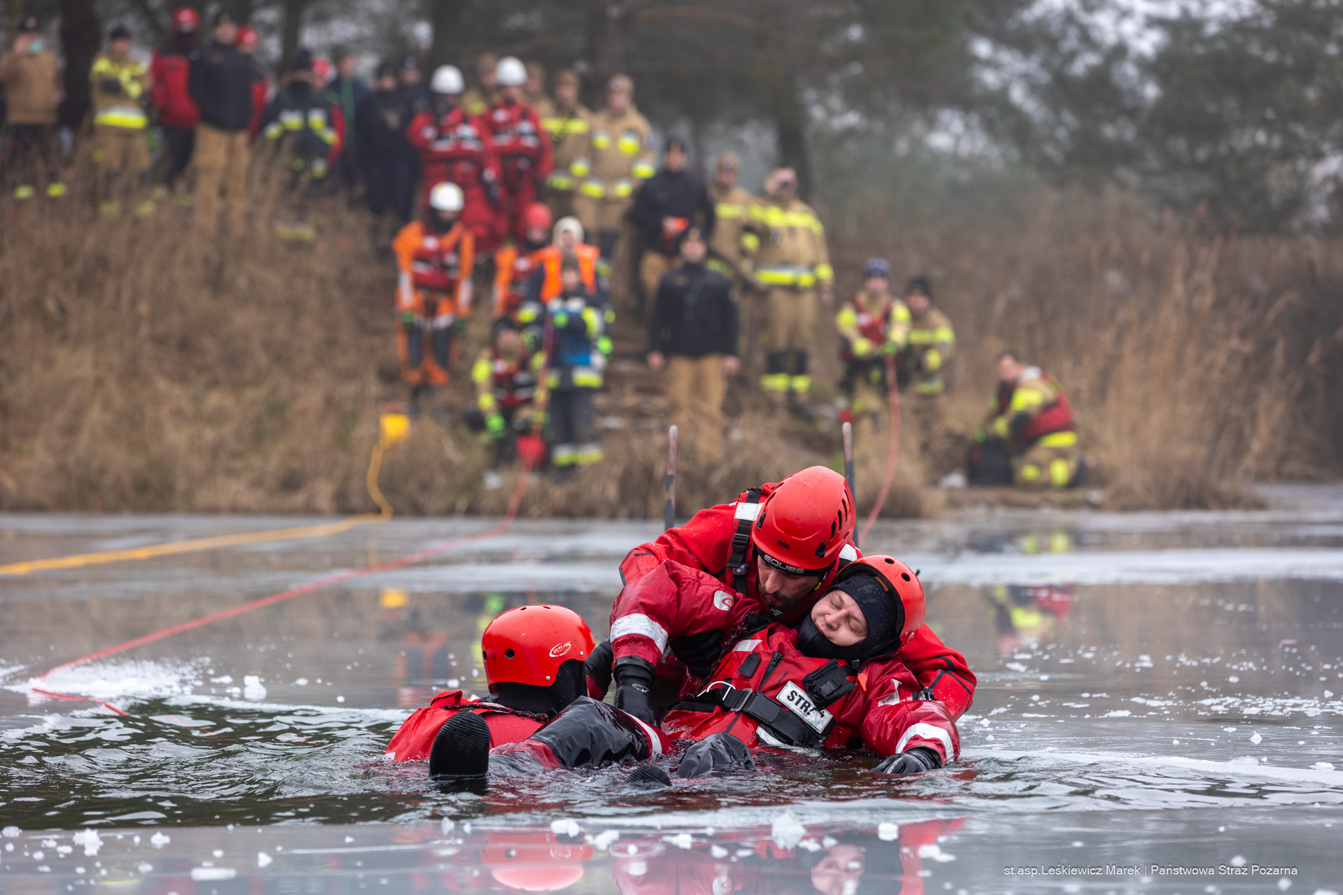 W szkoleniu udział wzięły jednostki Ochotniczych Straży Pożarnych z gminy Czerwonak oraz Jednostka Ratowniczo-Gaśnicza nr 8 z Bolechowa. Strażacy wspólnie doskonalili swoje umiejętności w zakresie podejmowania osoby, pod którą załamał się lód i która wpadła do wody. Ćwiczenia obejmowały zarówno techniki bezpiecznego dotarcia do poszkodowanego, jak i jego ewakuację z lodowatej wody.